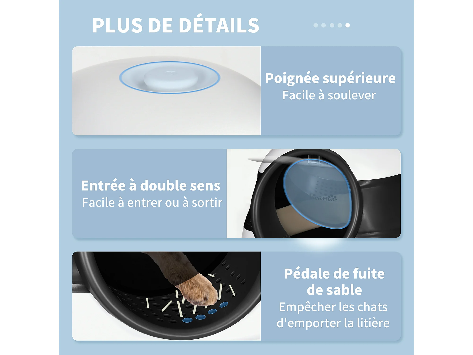 Maison de toilette chat porte battante et haute pelle PP gris blanc