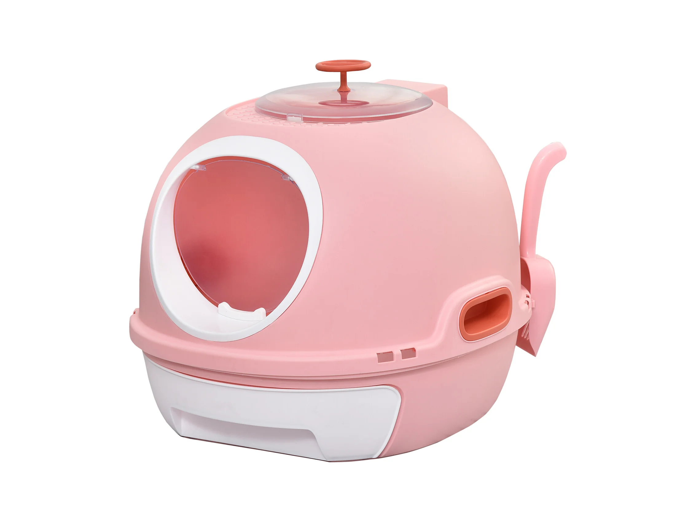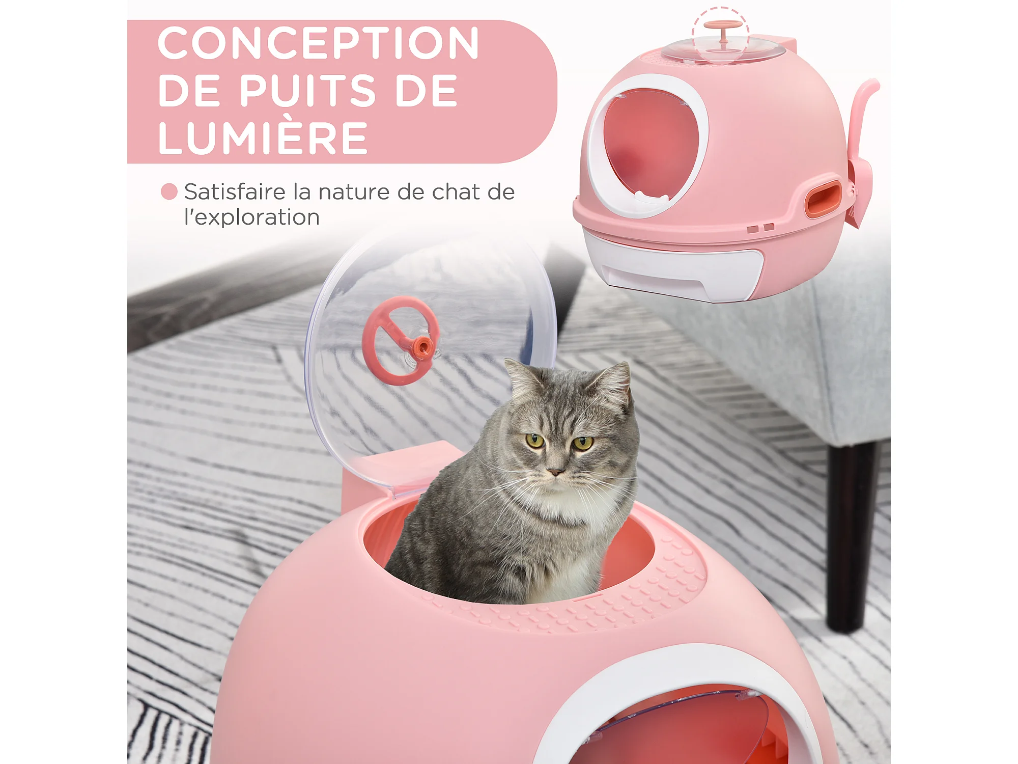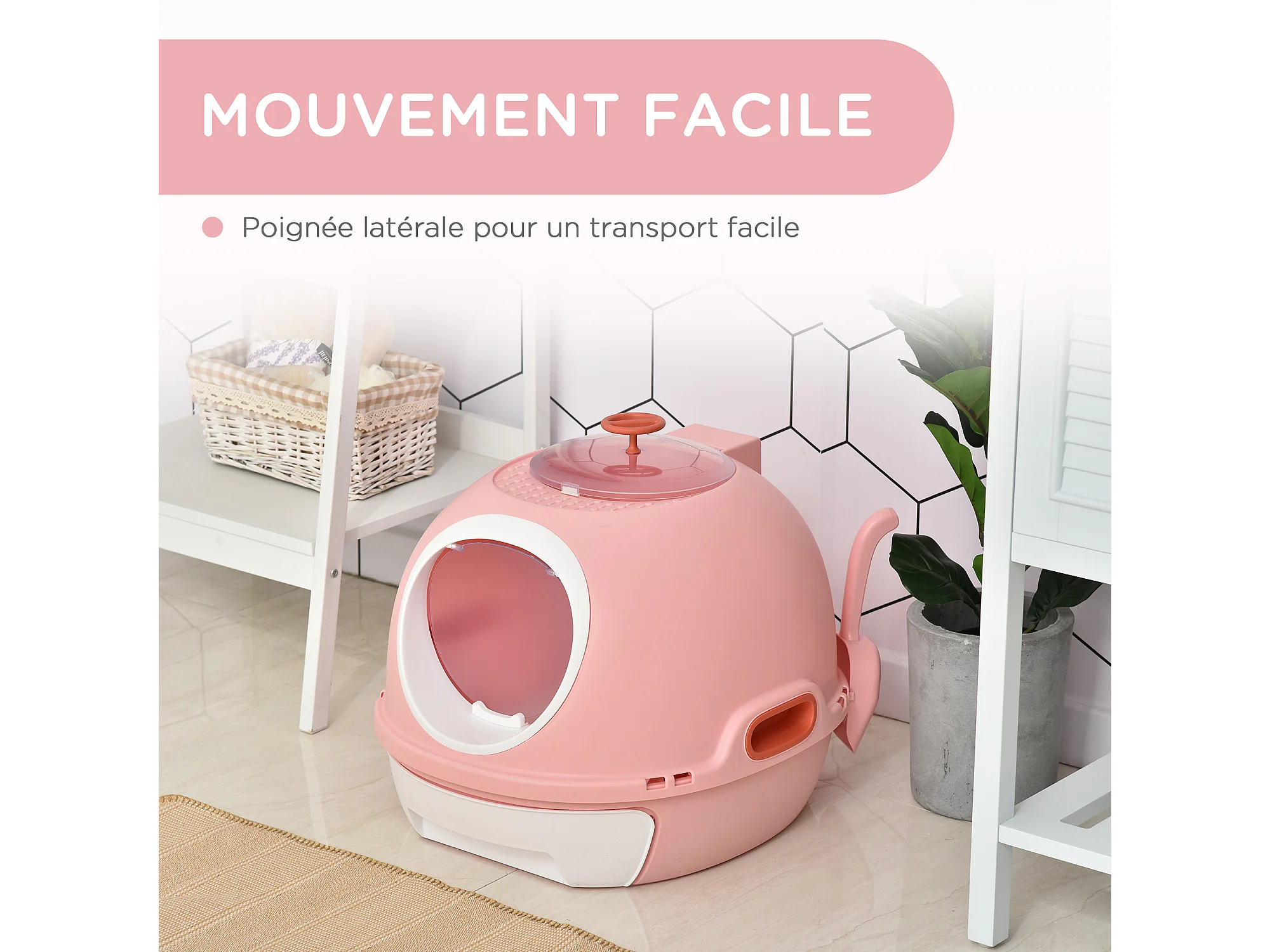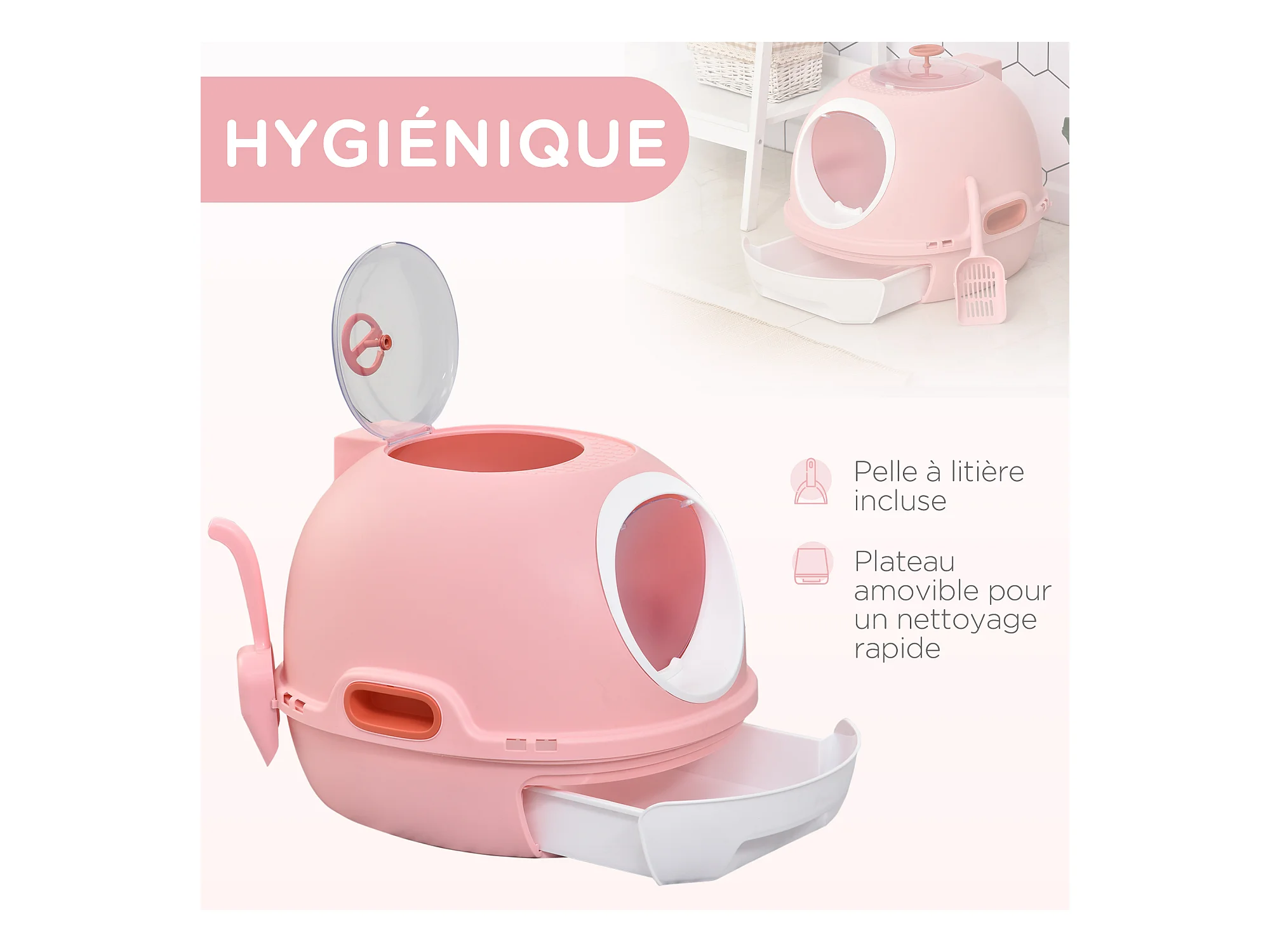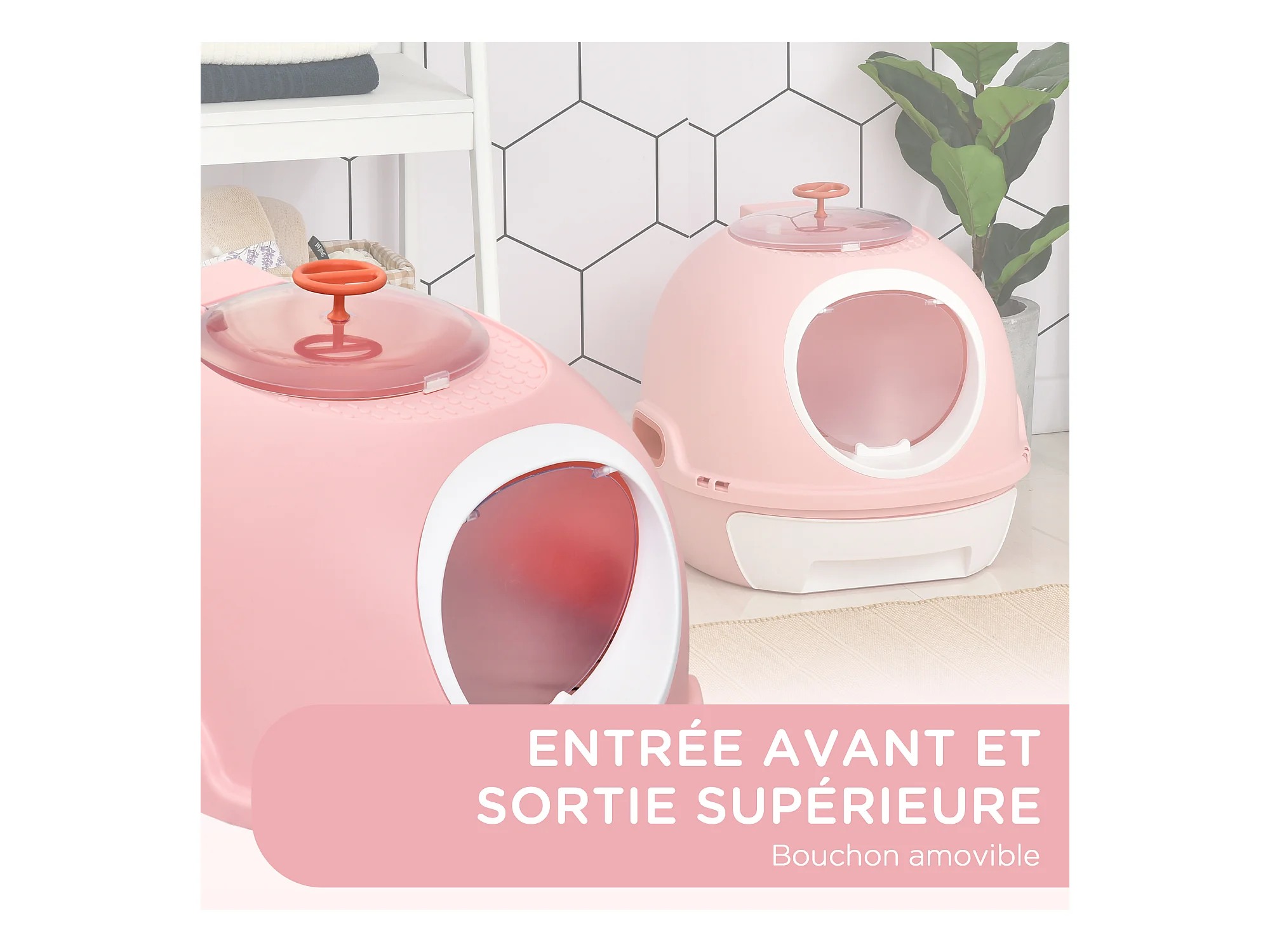 Maison de toilette portable pour chat tiroir à litière coulissant porte battante lucarne + pelle fournis dim. 47L x 55l x 44H cm rose