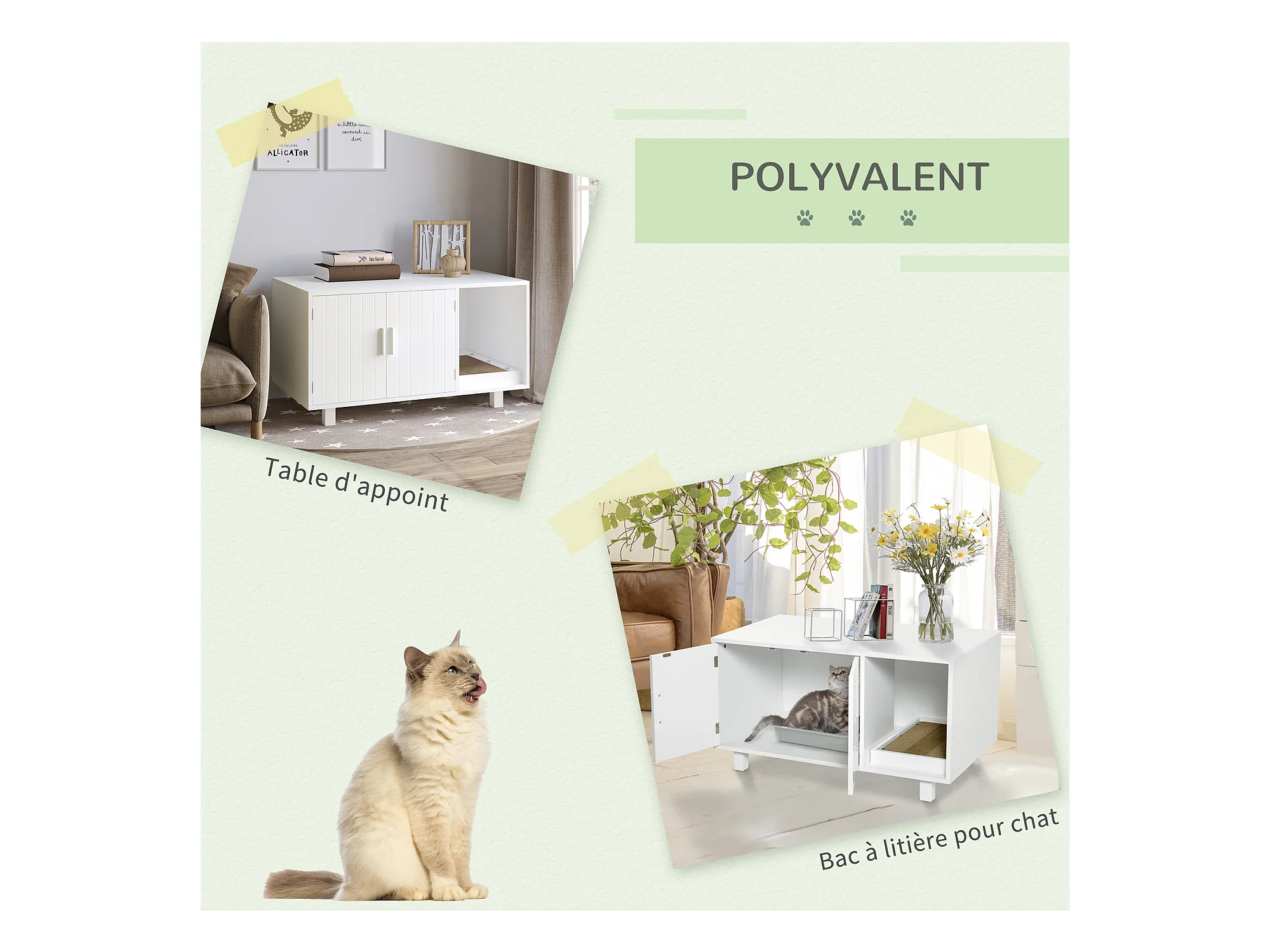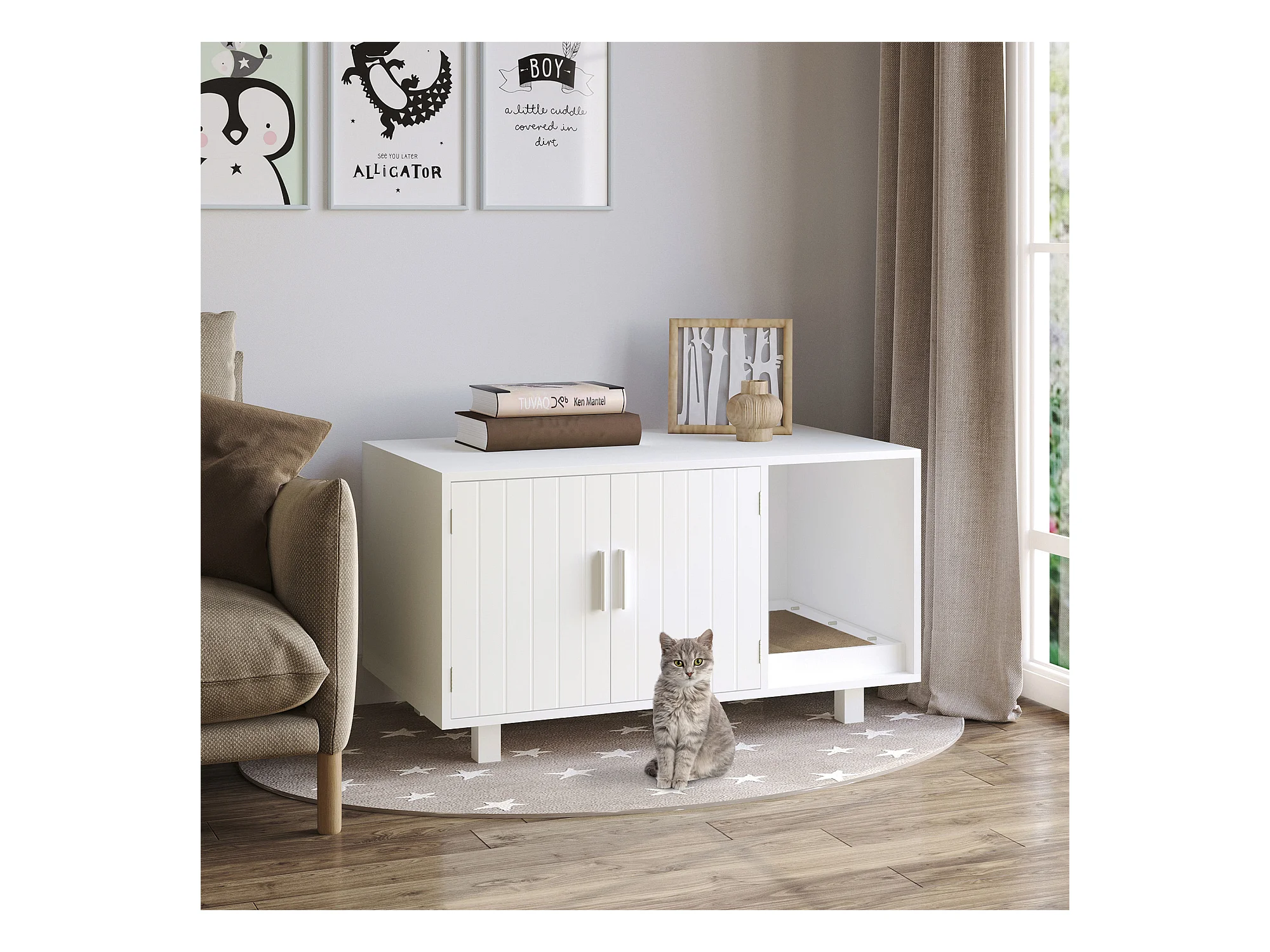 Toilette pour Chat SucceBuy , Meubles Cachés en Bois, 147cm, Blanc