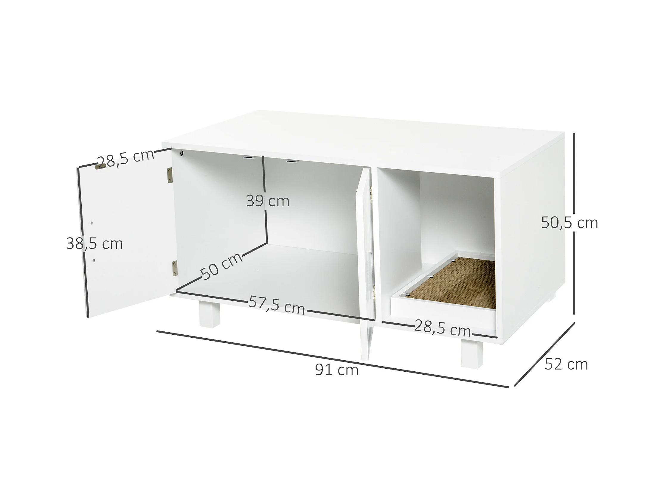 Maison de toilette pour chat - 2 portes, niche, grattoir amovible - MDF blanc