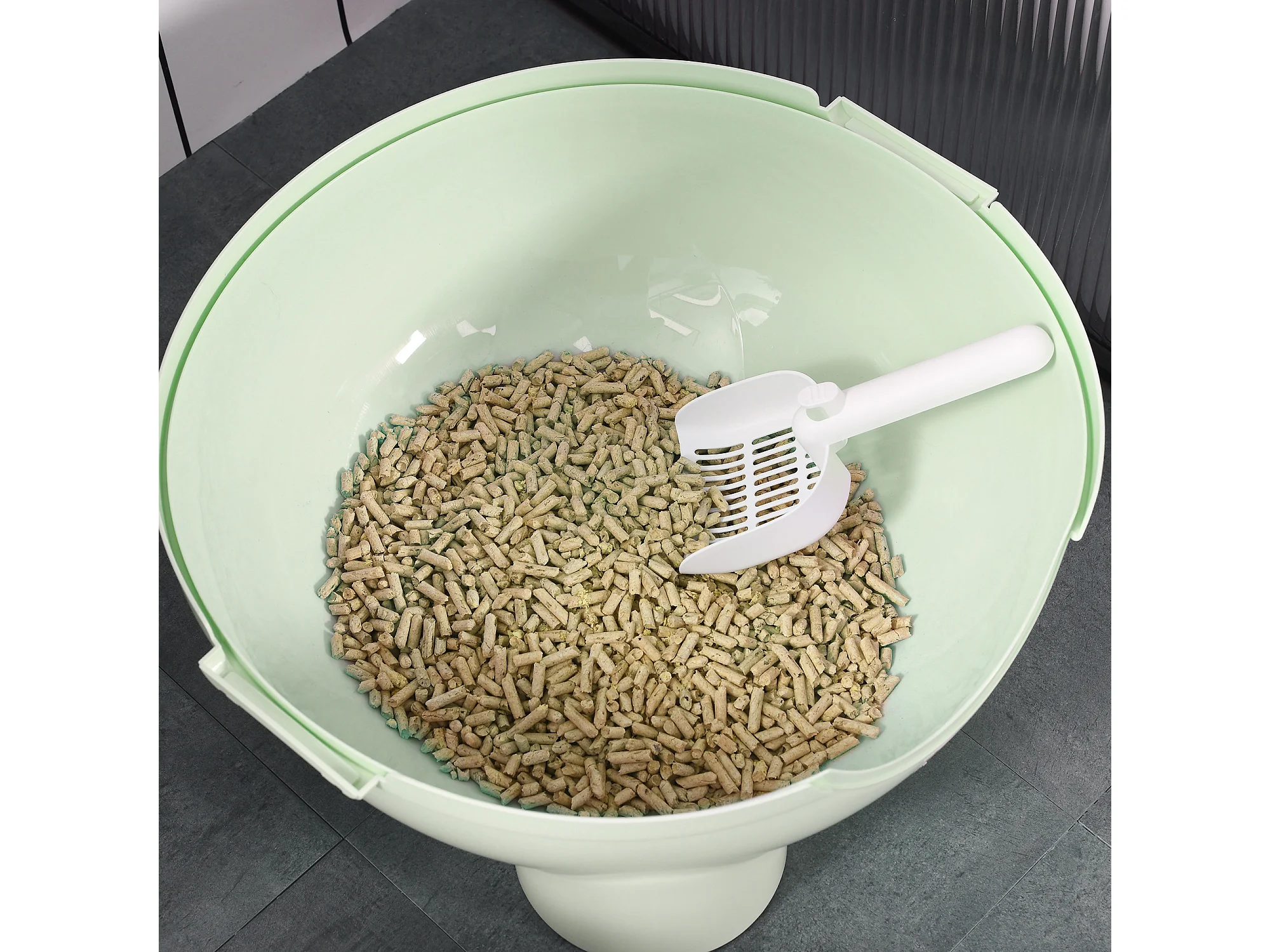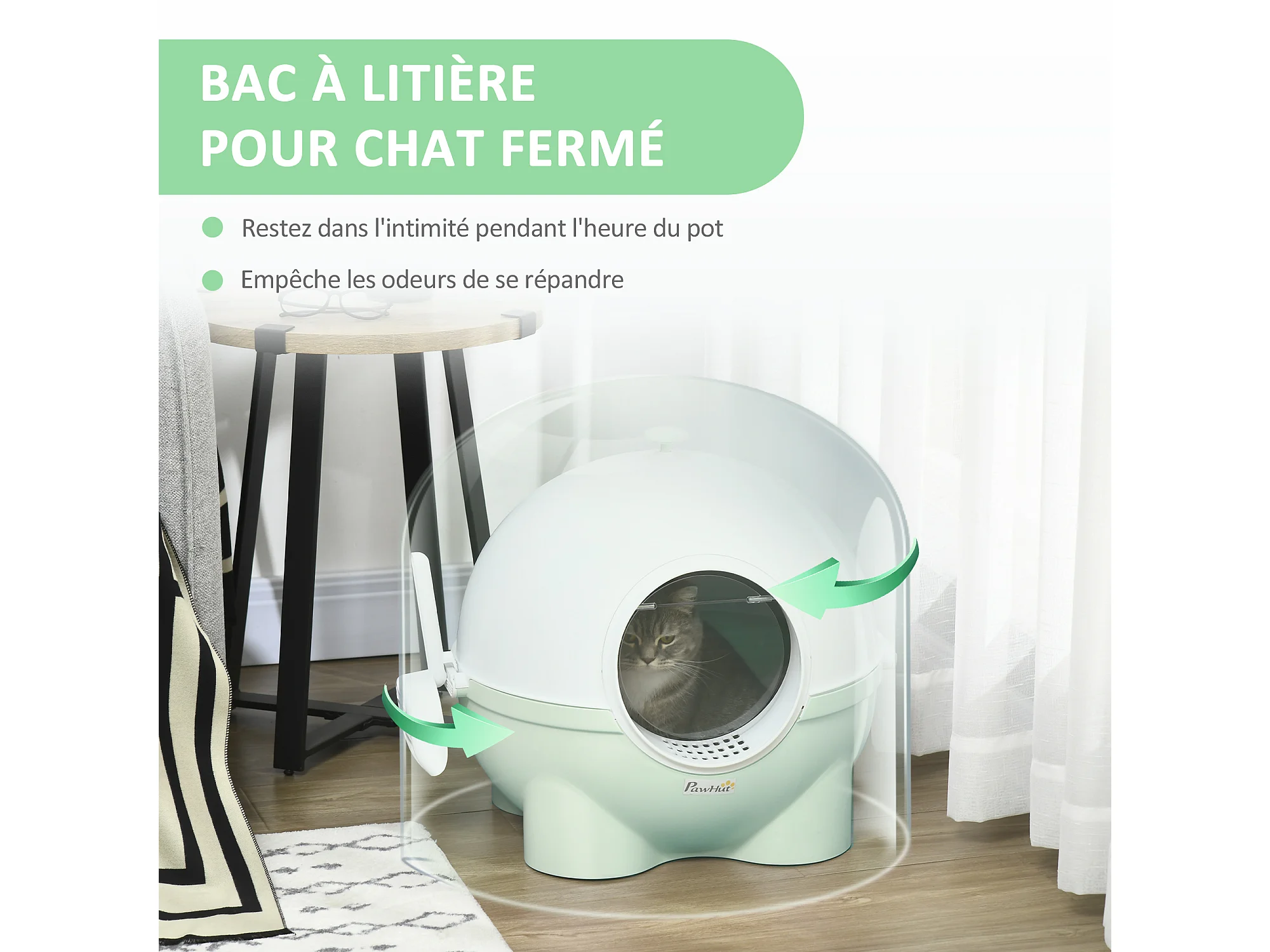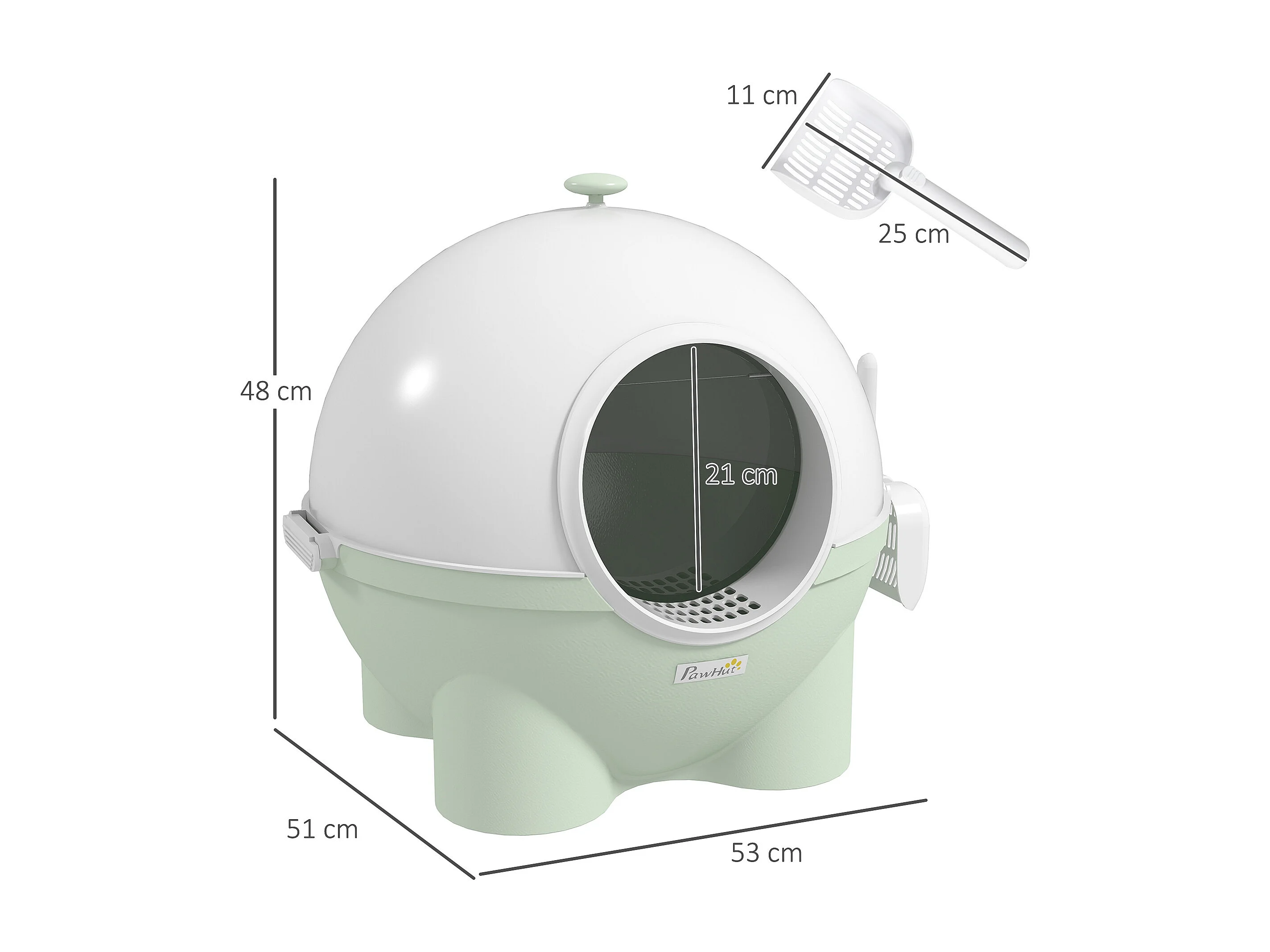 Maison de toilette pour chat design boule - porte battante, couvercle amovible, pelle - PP vert blanc