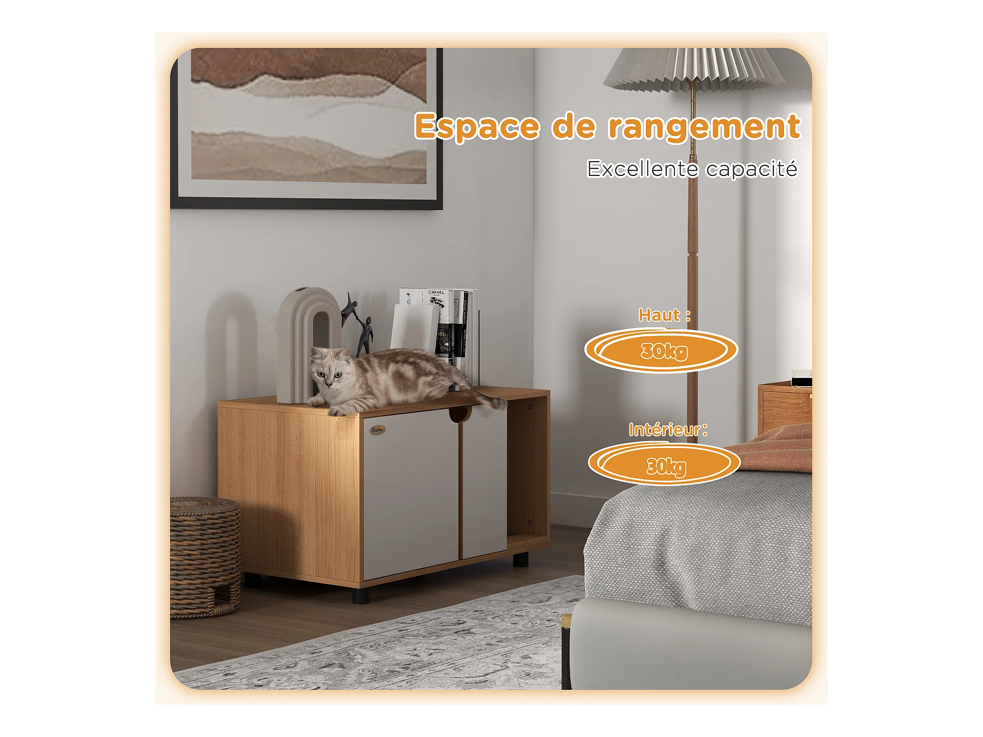 Maison de Toilette pour Chat à Double Portes, 80x50x57cm