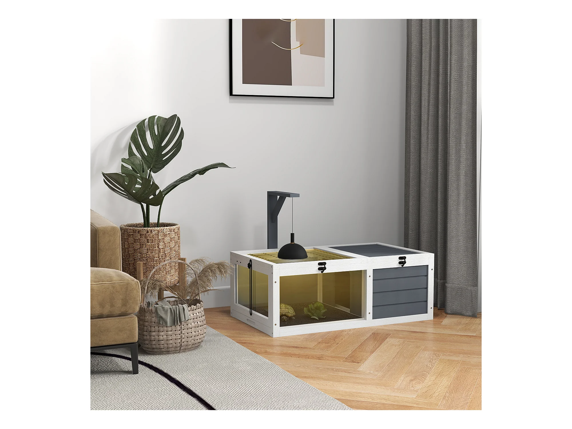 Maison enclos cage pour petit animal tortue avec 2 espaces bois gris
