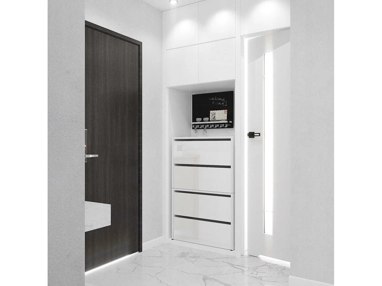 Meuble à Chaussures Blanc Brillant 60x30x100cm – Étagère de Rangement Entrée Style Loft