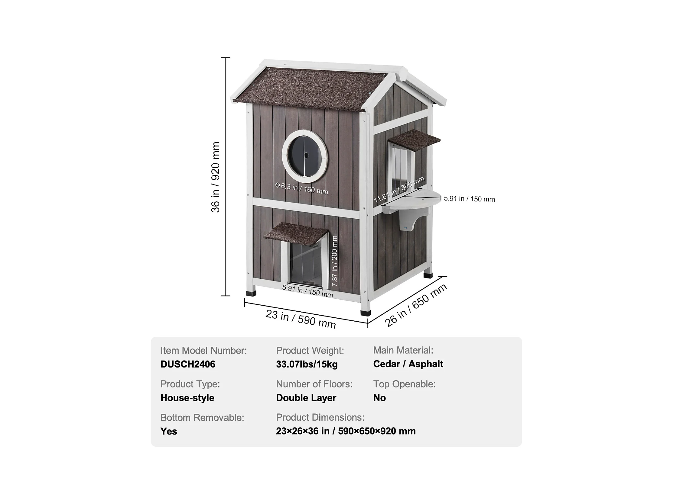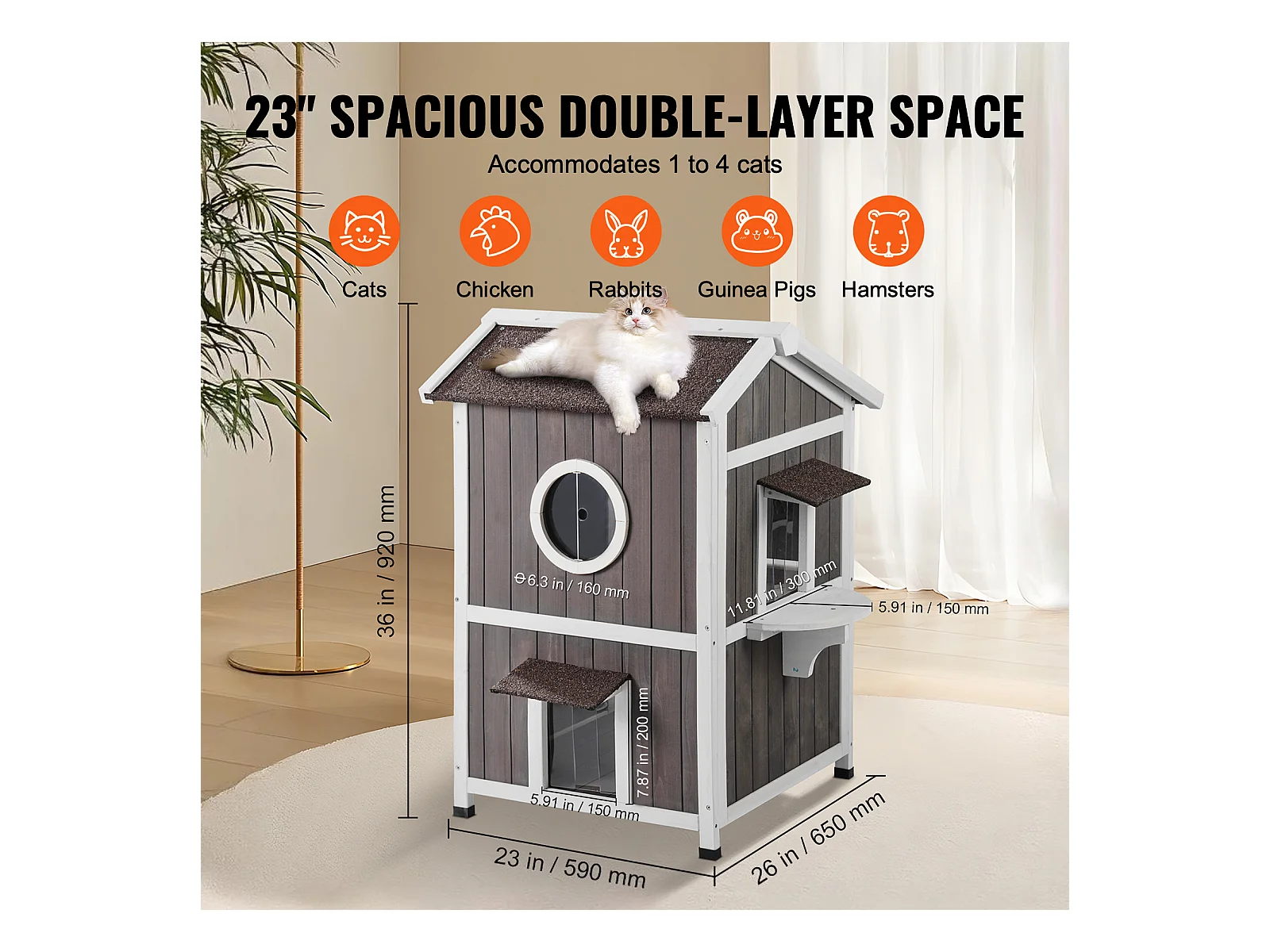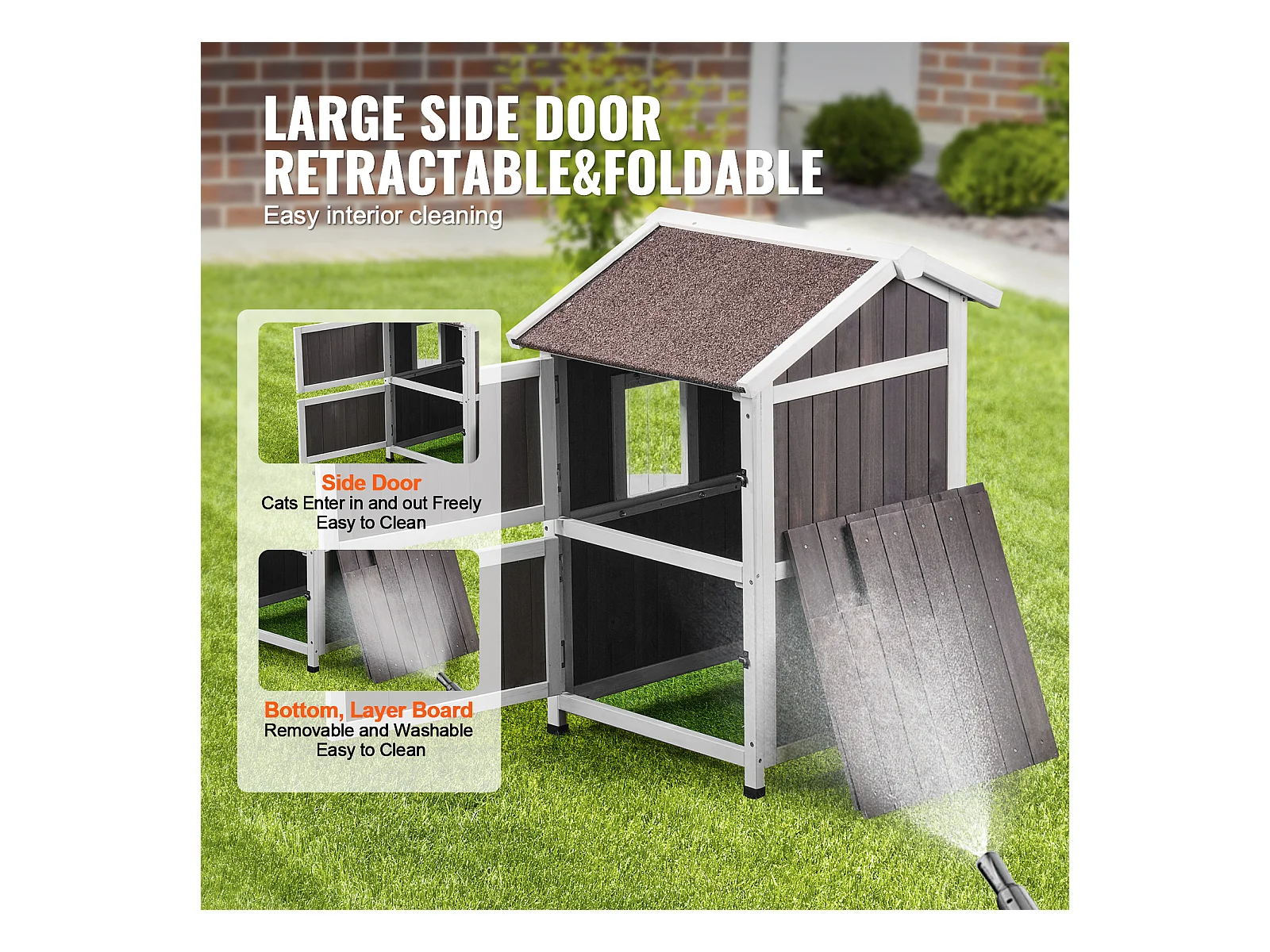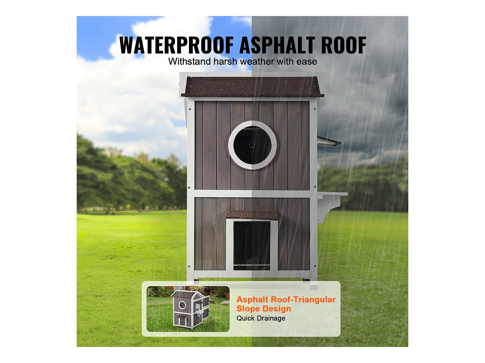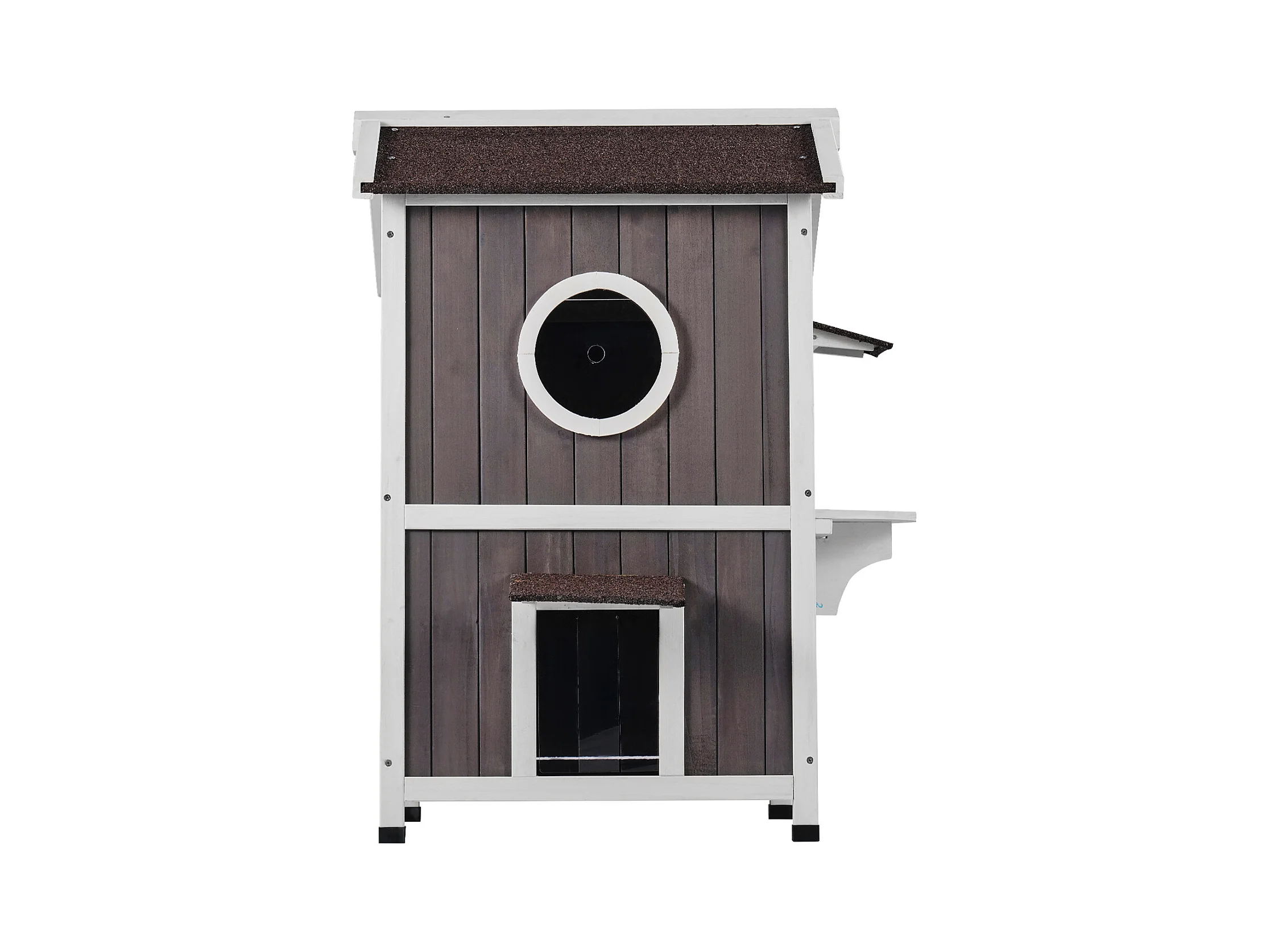 Maison pour Chat, SucceBuy Maison d'Extérieur pour Chat - Abri pour Chat Sauvage en Bois à 2 Étages avec Toit et Portes à Rabat