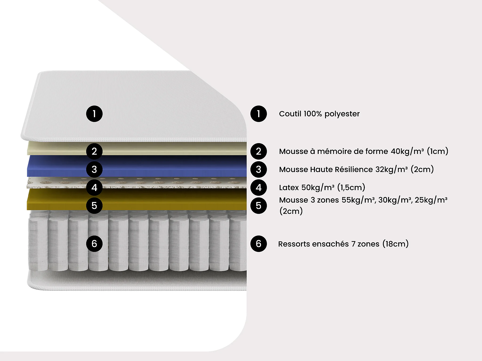 Ensemble 160 x 200 cm sommier coffre blanc + matelas hybride ressorts ensachés 7 zones mémoire de forme et latex ép.25cm - MALAO de PALACIO