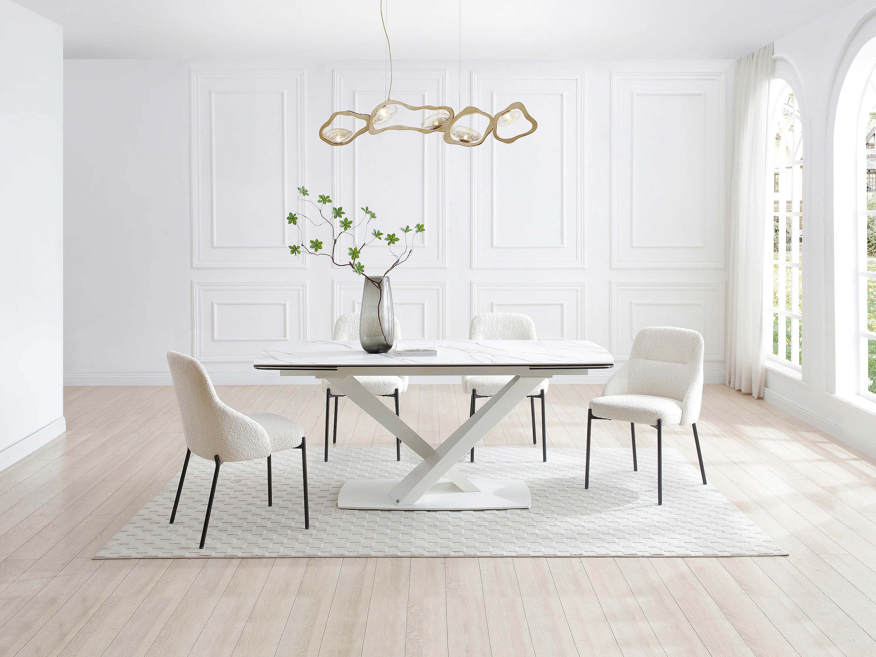Table à manger extensible 6 à 10 personnes en verre trempé, céramique et métal - Effet marbre blanc - MALATA de Maison Céphy