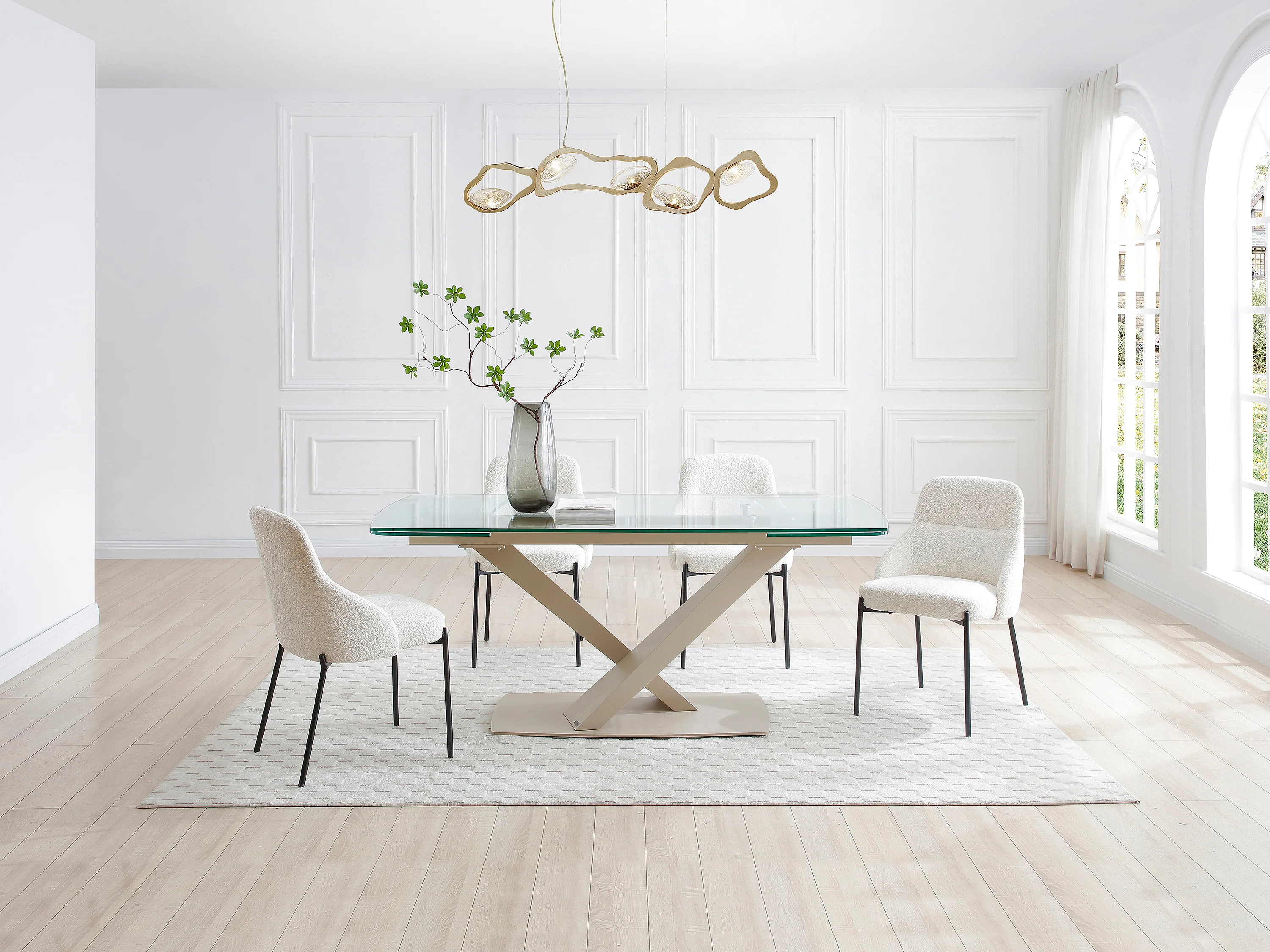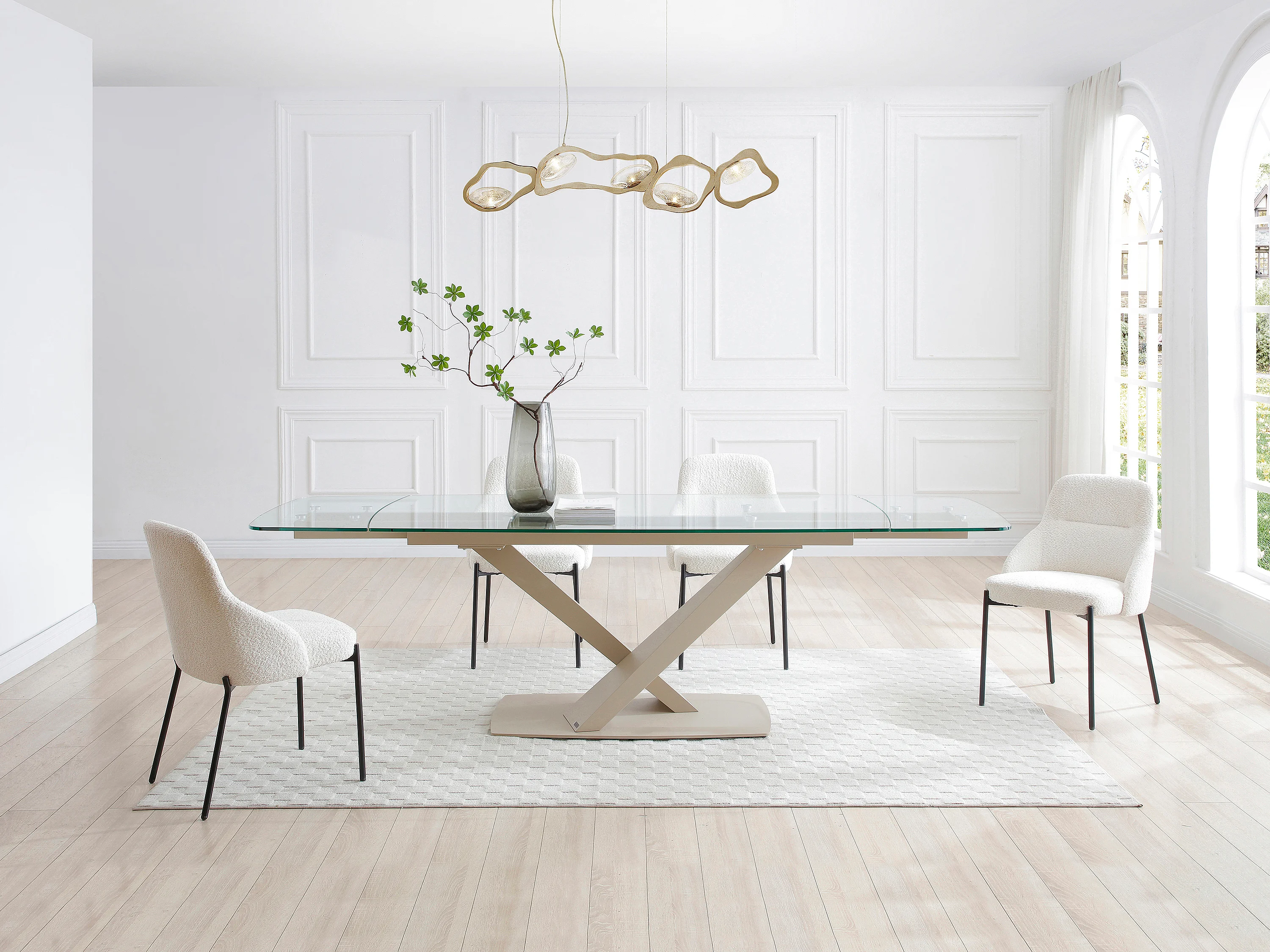 Table à manger extensible 6 à 10 personnes en verre trempé et métal - Transparent et beige - MALATA de Maison Céphy