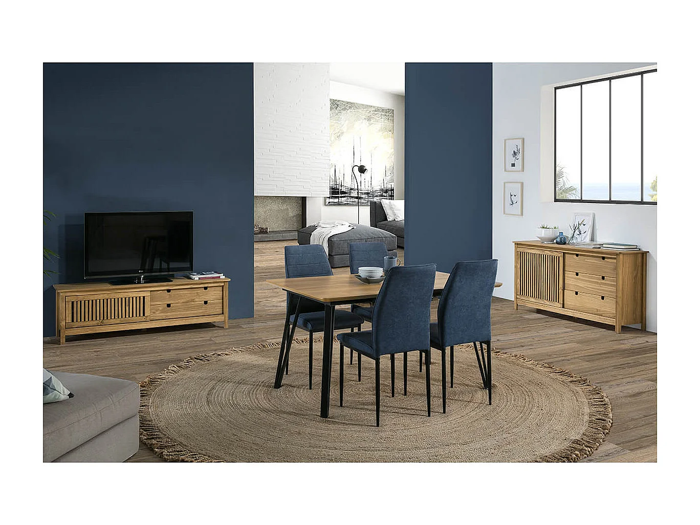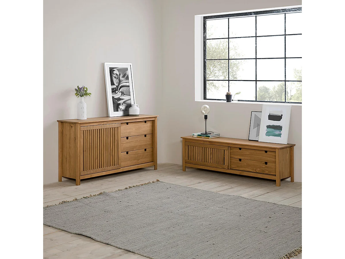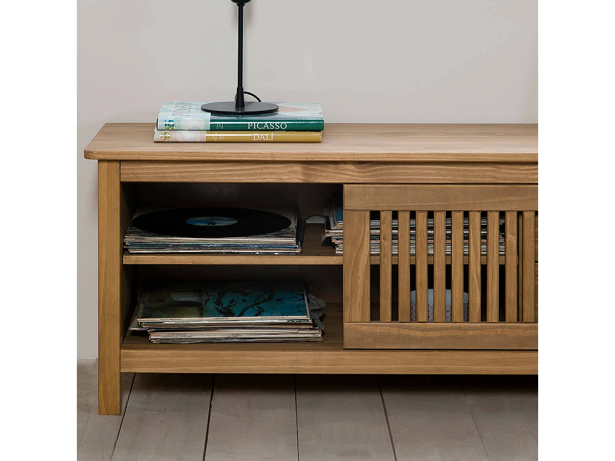 MALIA - Meuble TV 1 Porte Coul. 2 Tiroirs Bois Ciré