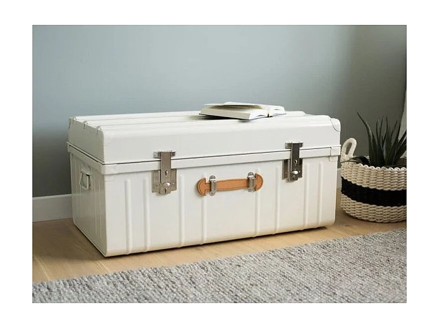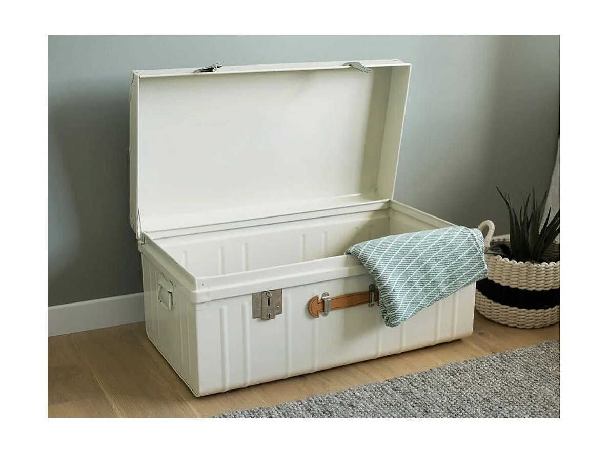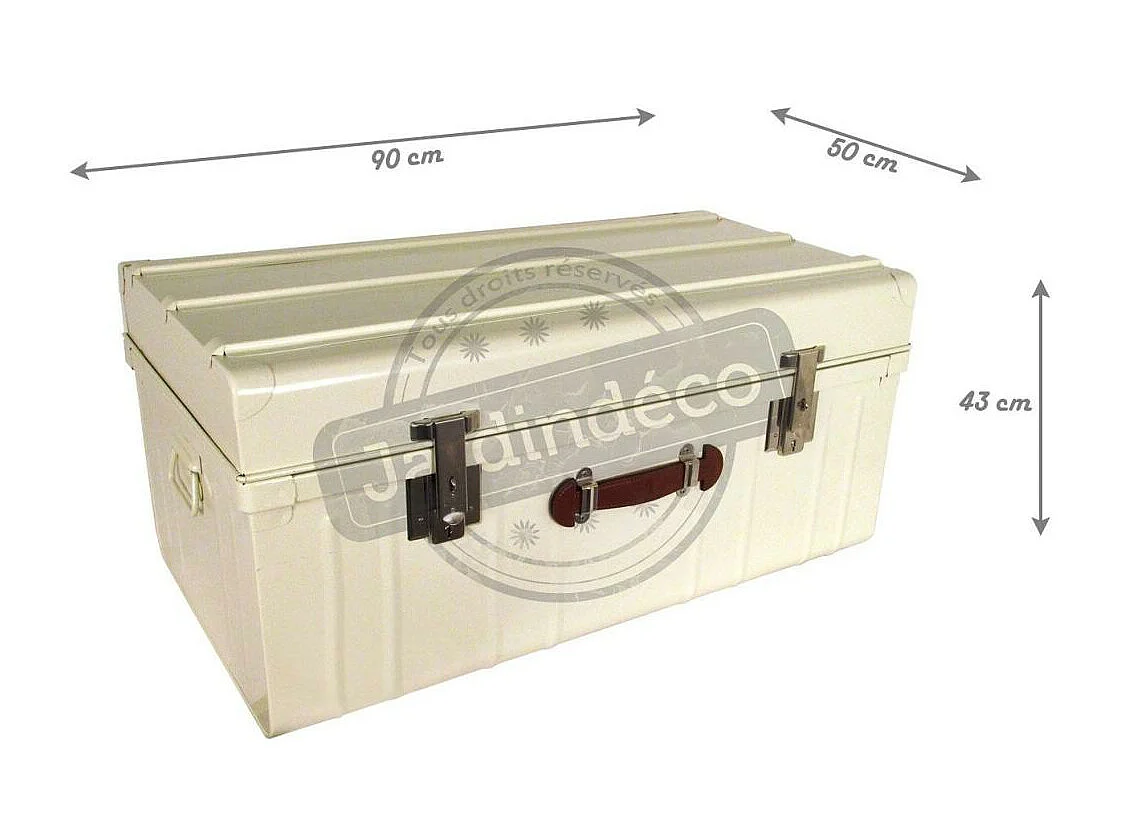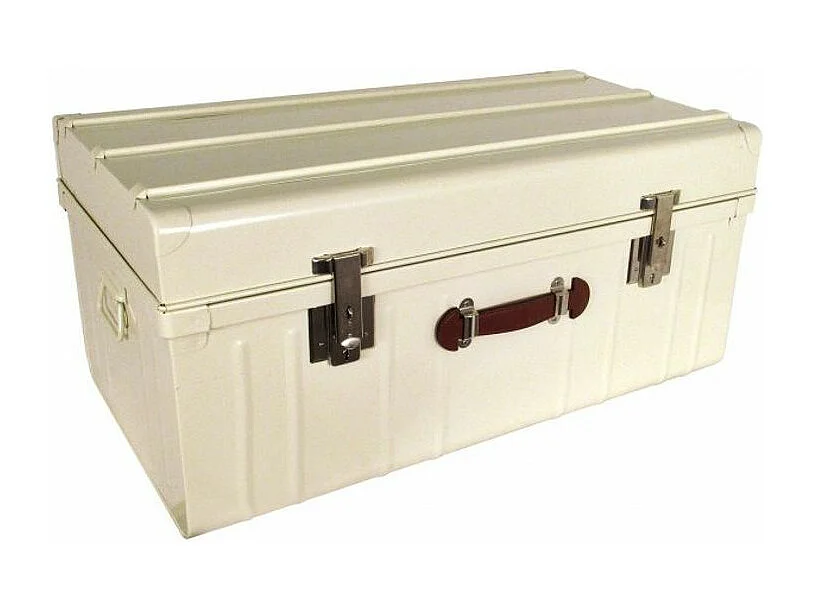 Malle métallique crème avec poignée simili cuir L90xH43xP50