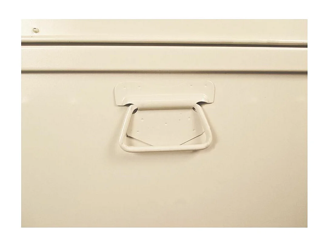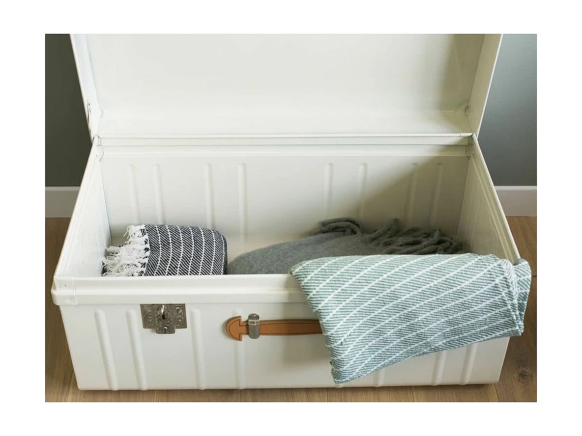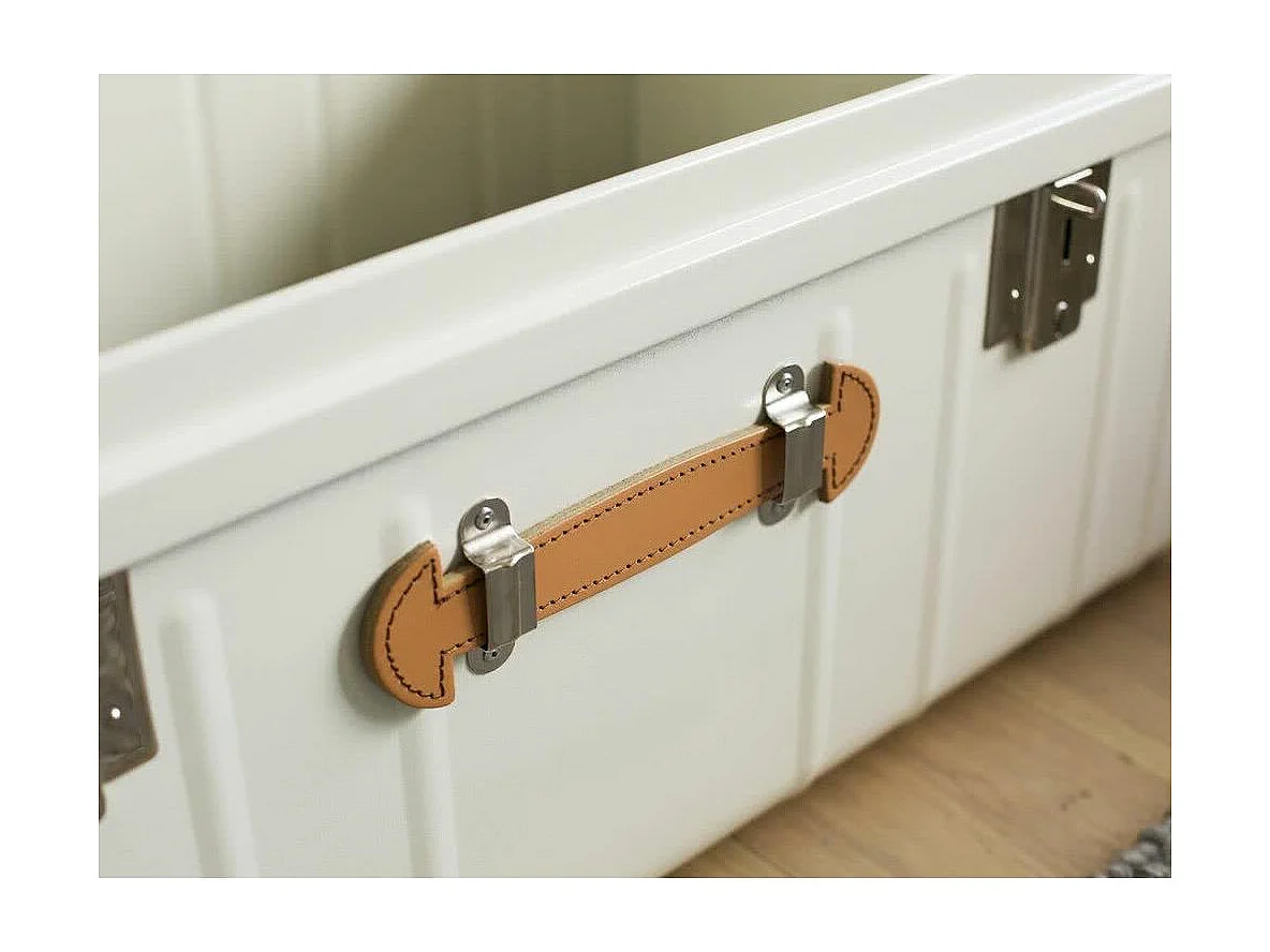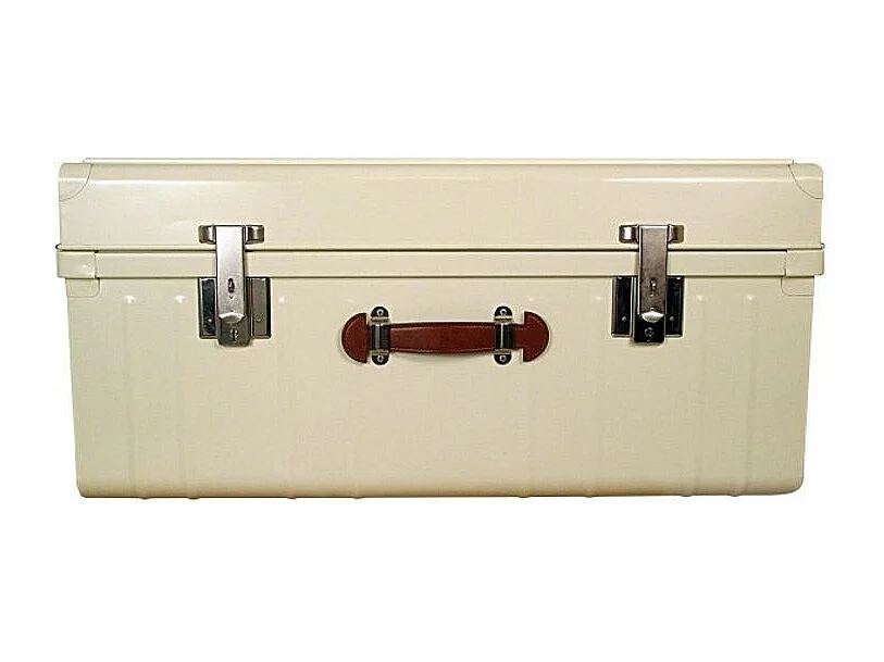 Malle métallique crème avec poignée simili cuir L90xH43xP50