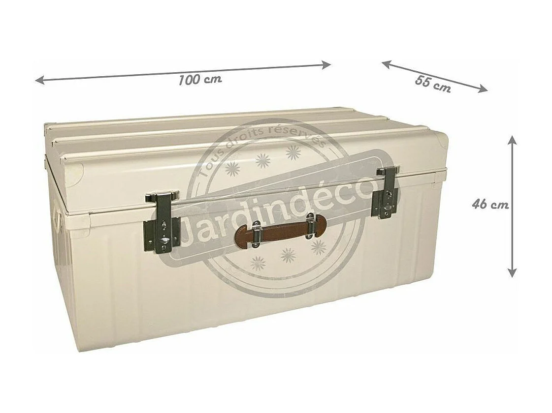 Malle métallique crème avec poignée simili cuir L100xH46xP55