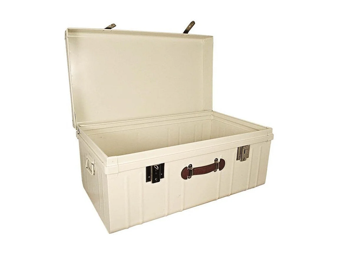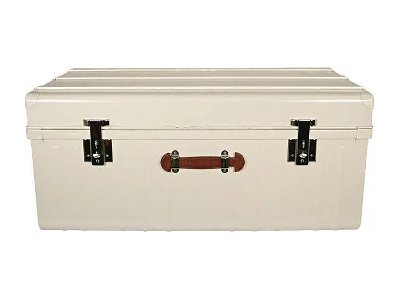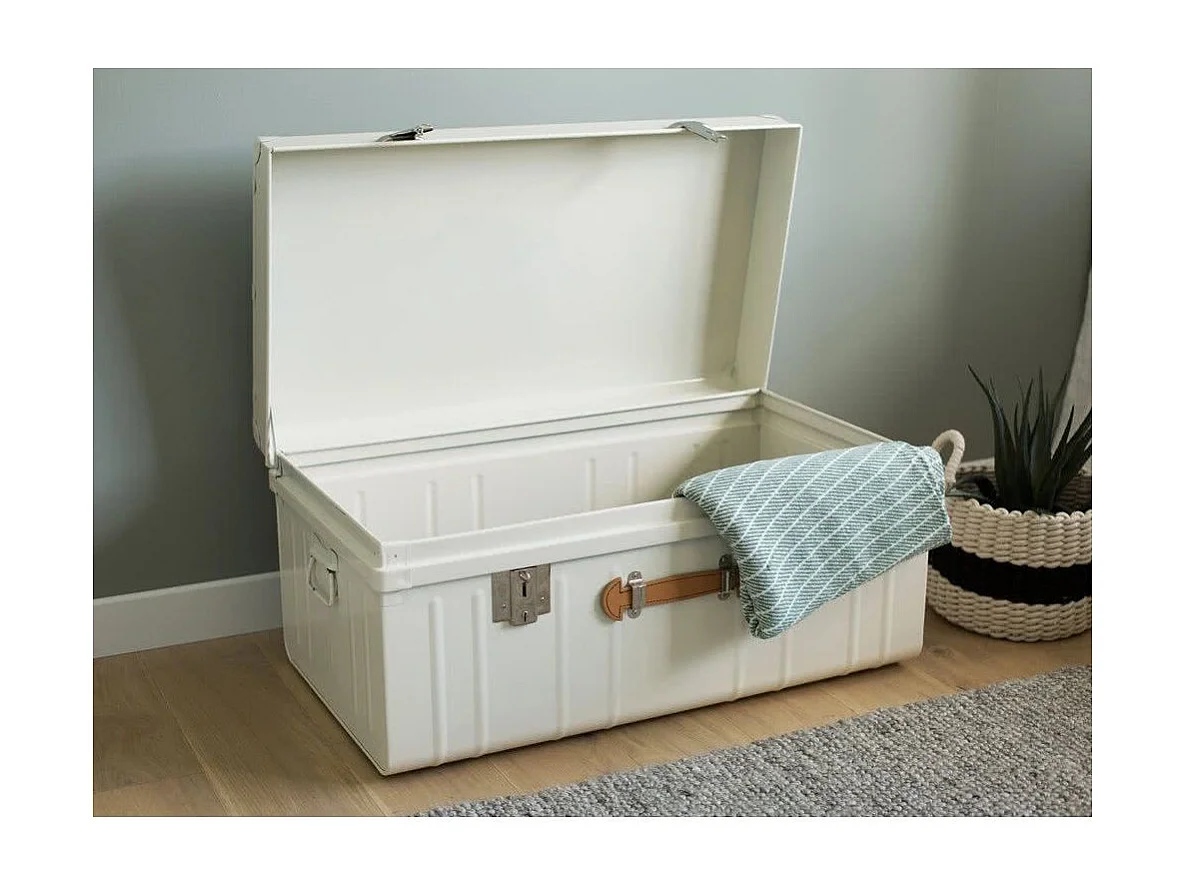 Malle métallique crème avec poignée simili cuir - Lot de 2