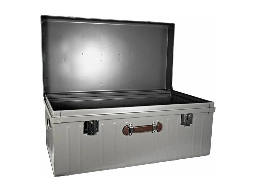 Malle métallique taupe avec poignée simili cuir L100xH46xP55