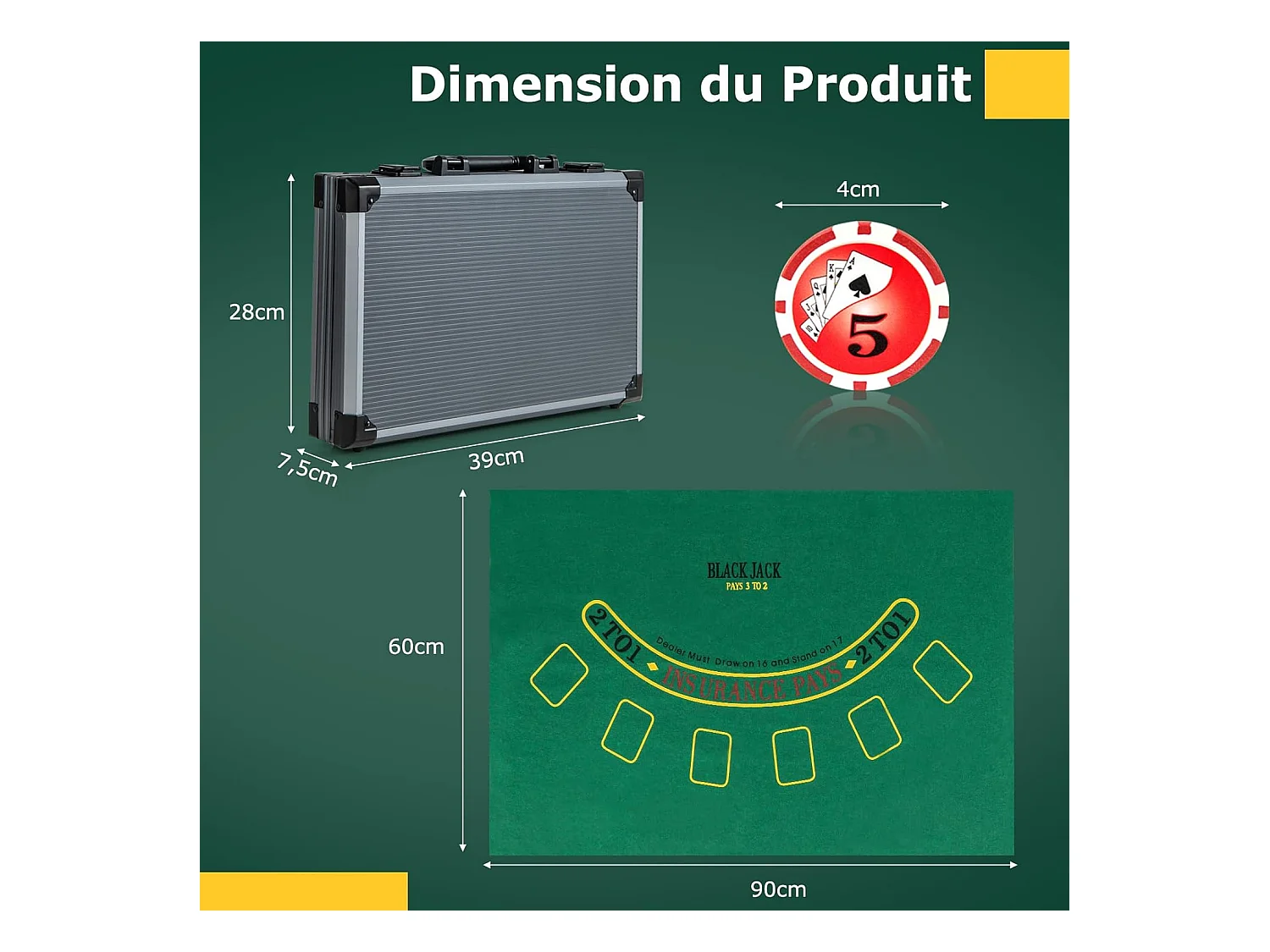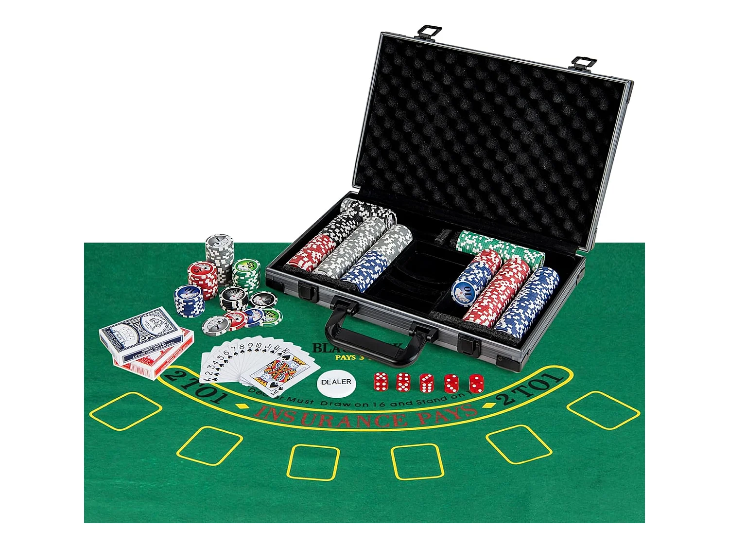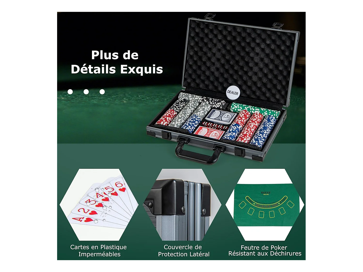 Mallette de Poker en Aluminium avec 300 Jetons & 2 Jeux de Cartes, Coffret de Poker Verrouillable avec 1 Dealer & Tapis en Feutre & 2 Clés pour Casino Fête Voyage