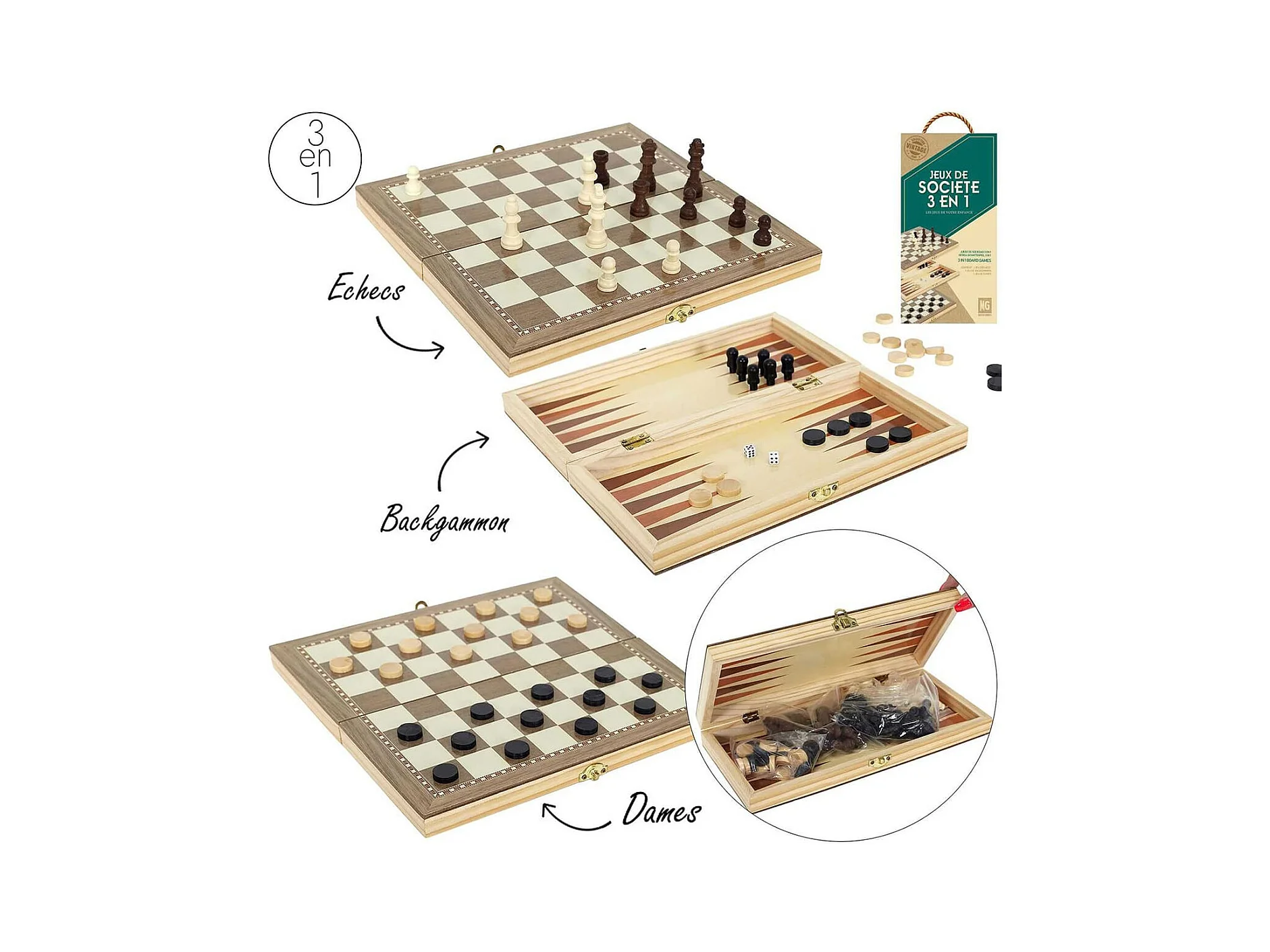 Mallette en Bois Jeux 3 en 1 - DAMIEN