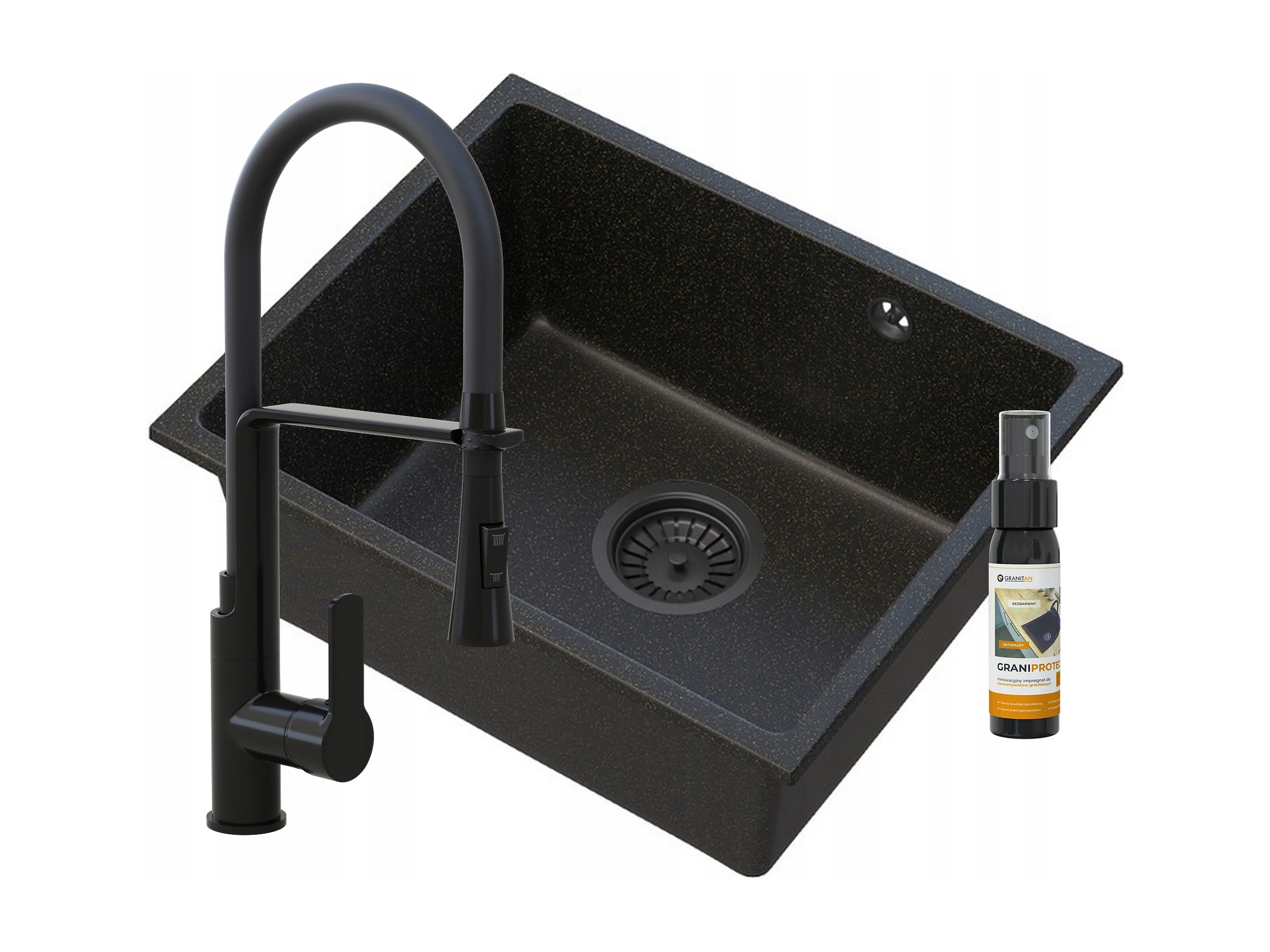 MANADO GOLD ÉVIER SOUS PLAN NOIR + ROBINETTERIE VEGAS