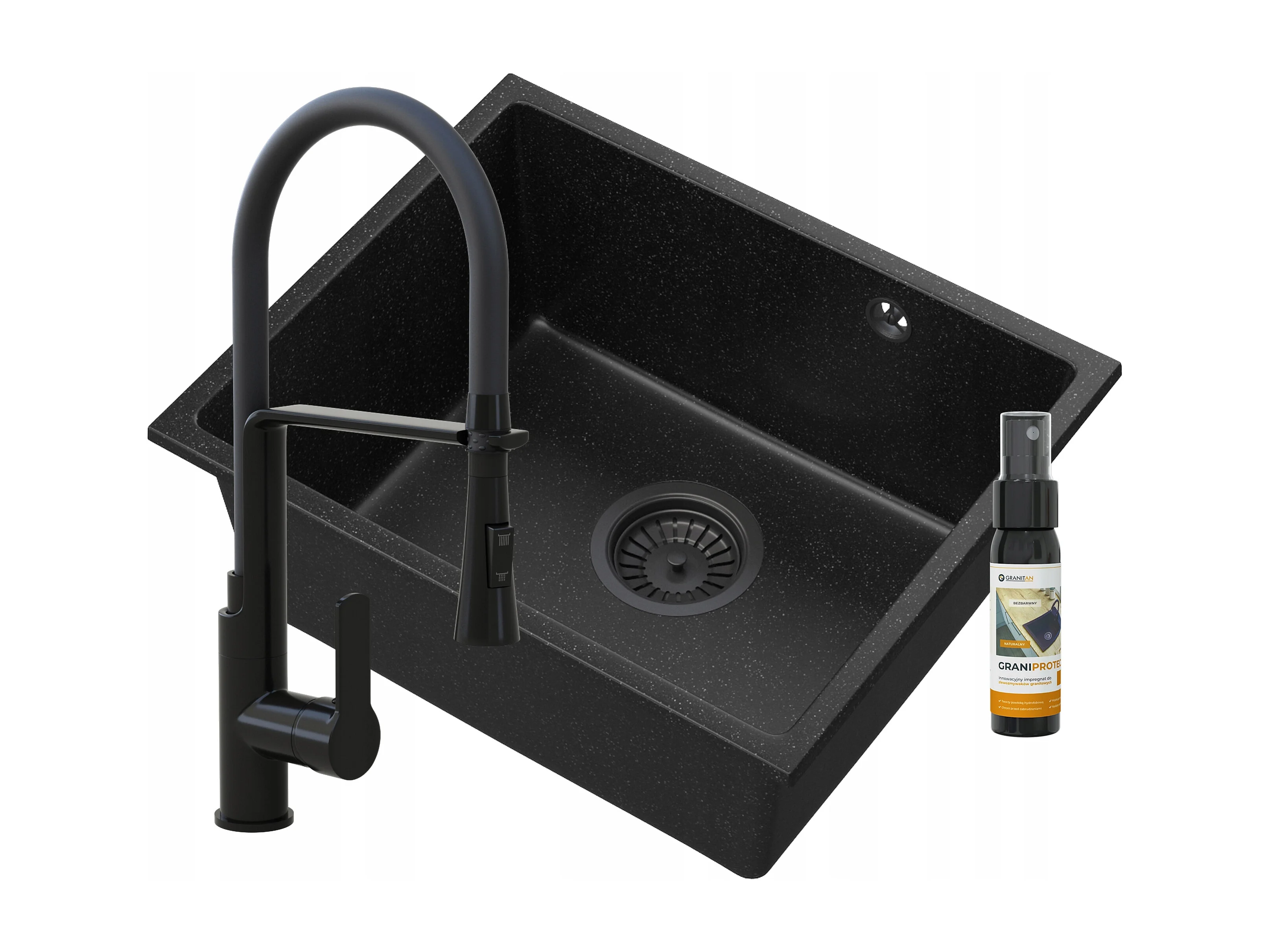 MANADO GRANITE ÉVIER SOUS PLAN NOIR+MÉLANGEUR GAZ