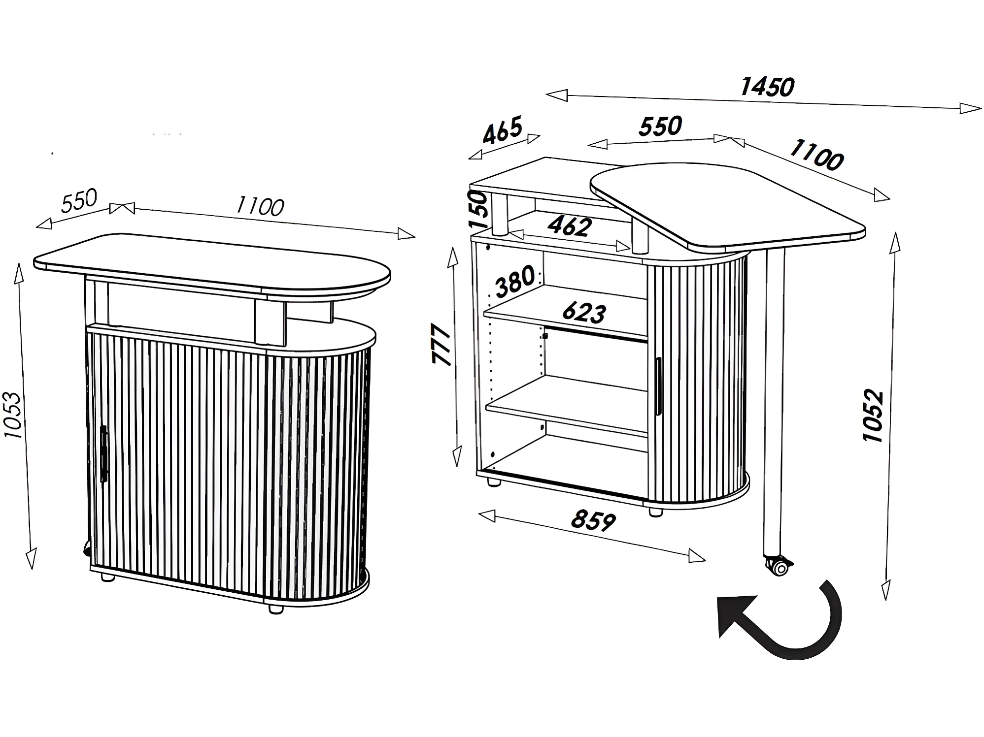Meuble Mange-Debout Blanc Drapeau Anglais 4 Niches L 110 H 105.3 P 55 cm