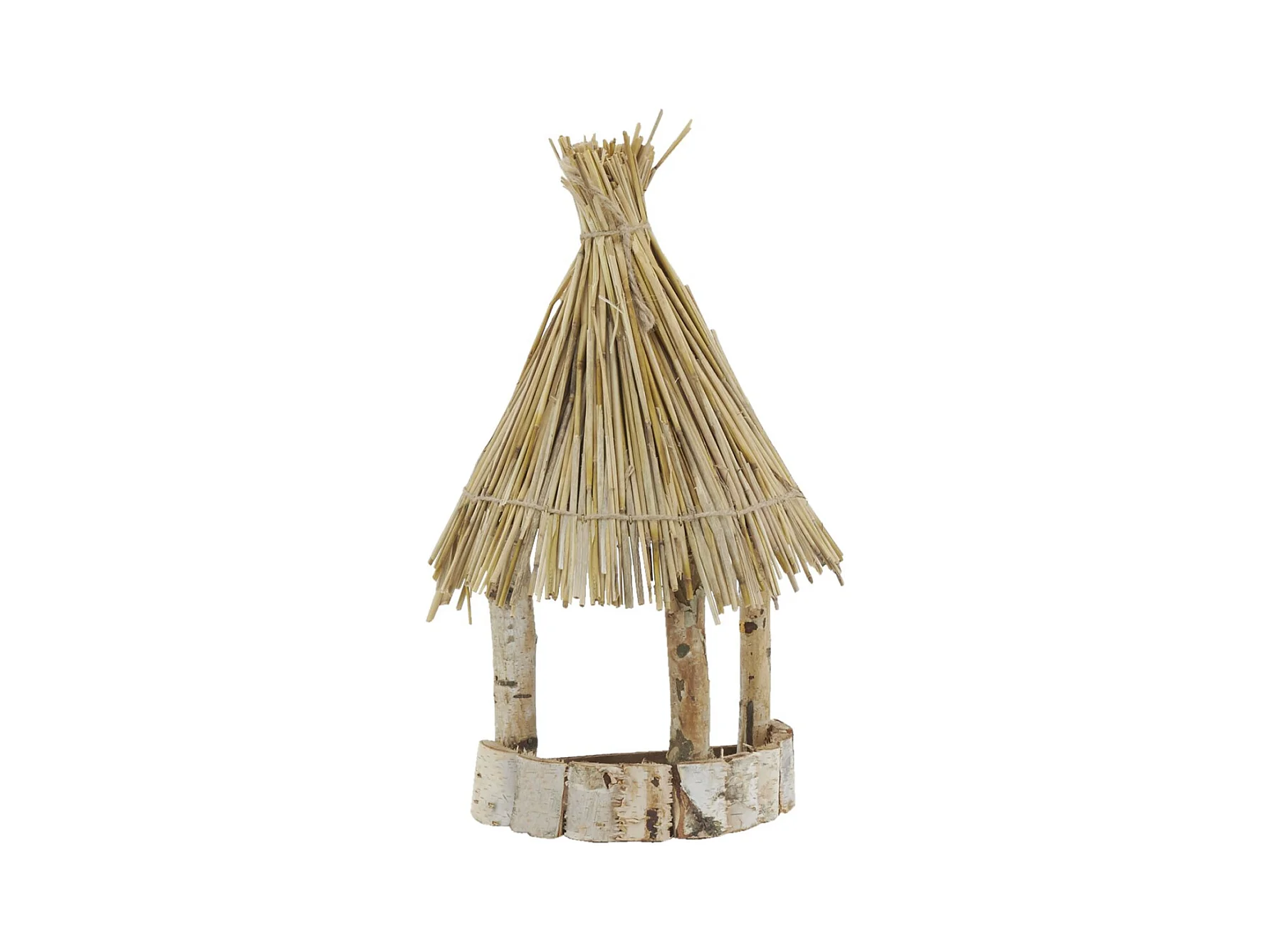 Maison de toilette pour chat style industriel porte entrée latérale boule suspendue châssis acier aspect bois clair