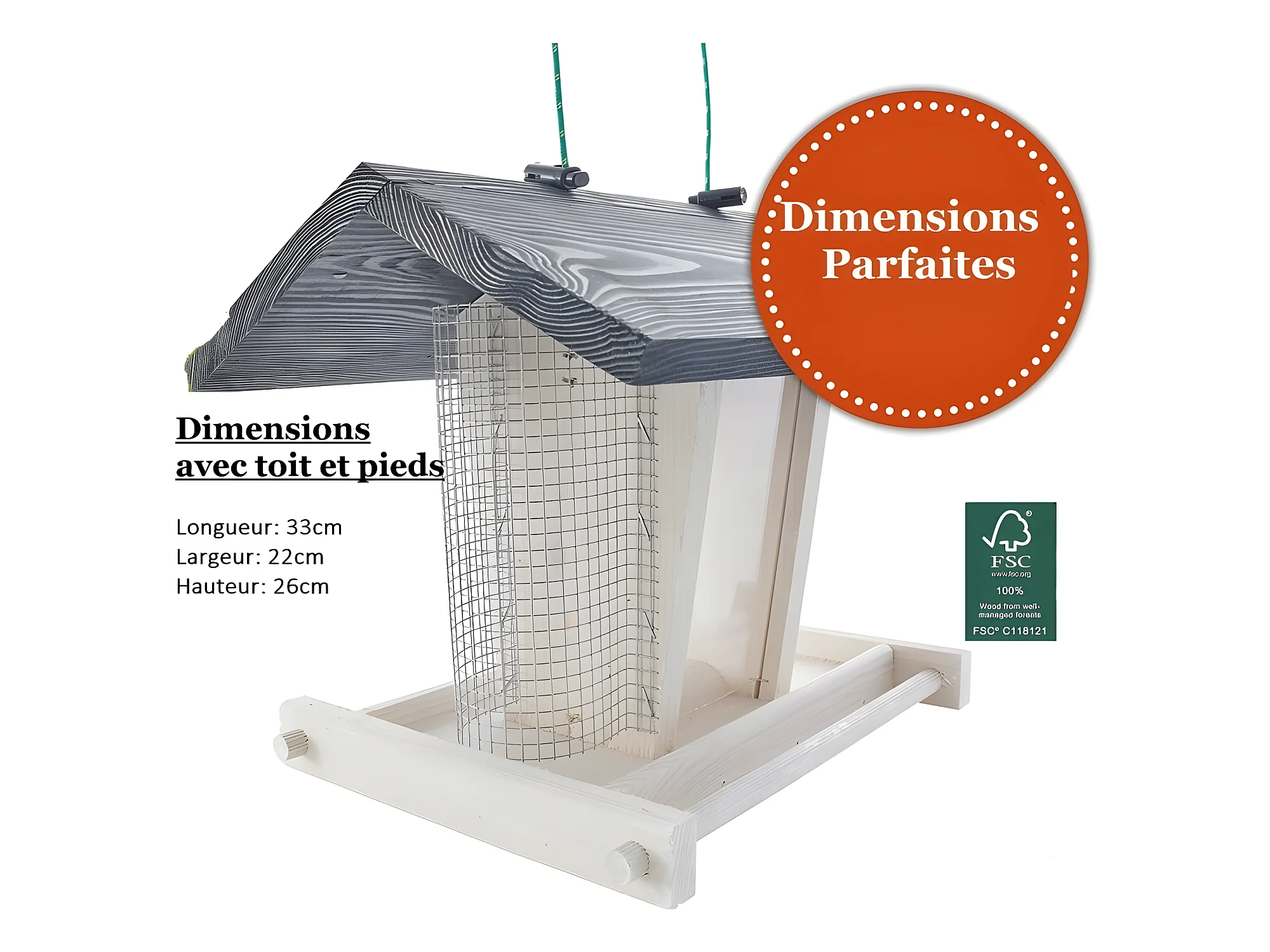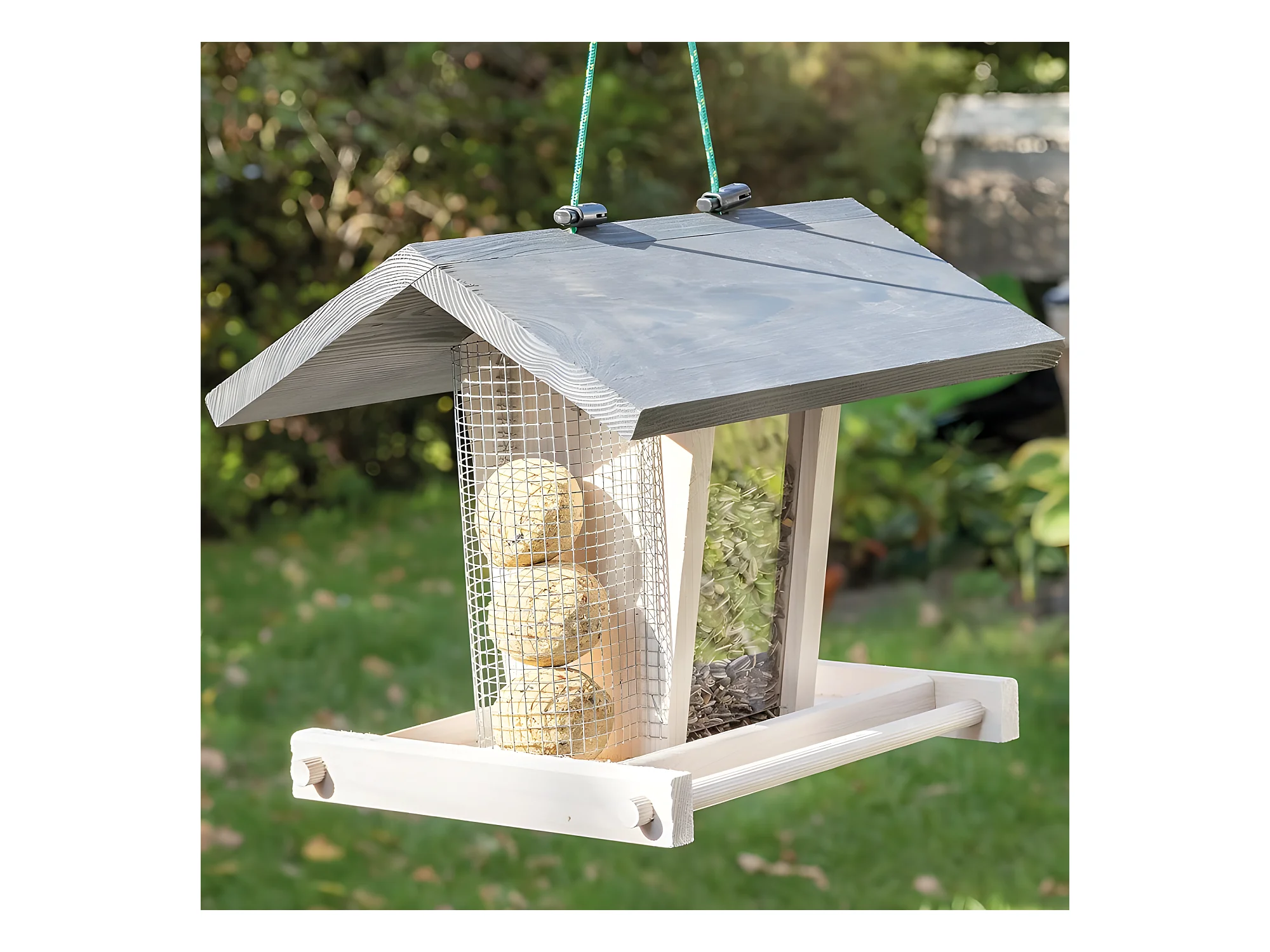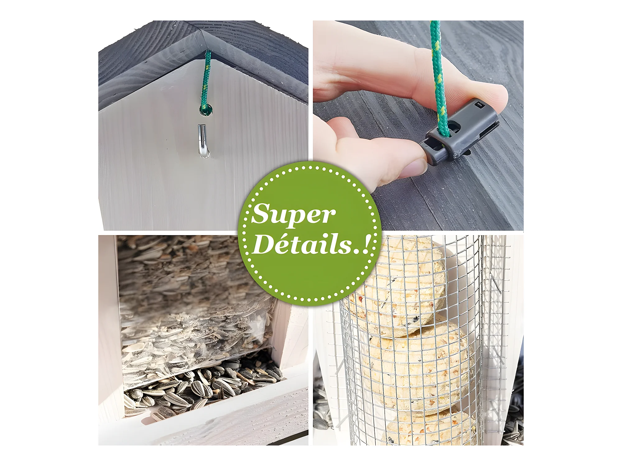 Mangeoire oiseaux extérieur à suspendre pour oiseaux sauvages pour jardin balcon Distributeur de graines«324 Cabane Gris Blanc»