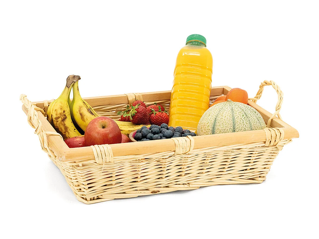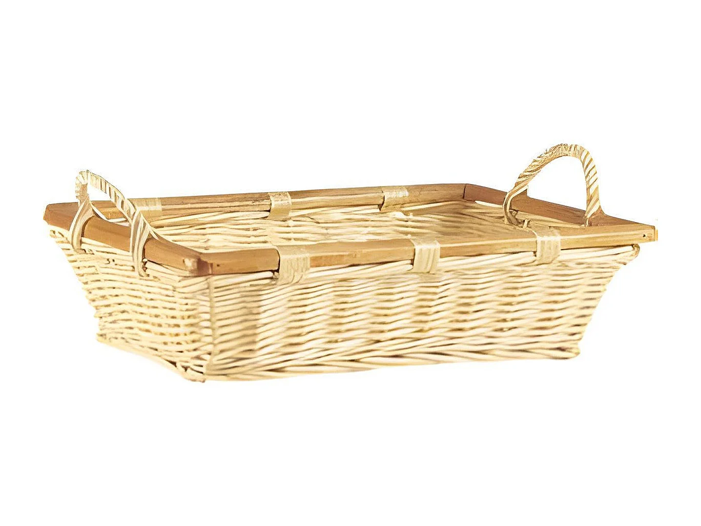 Corbeille rectangulaire en osier blanc avec 2 anses