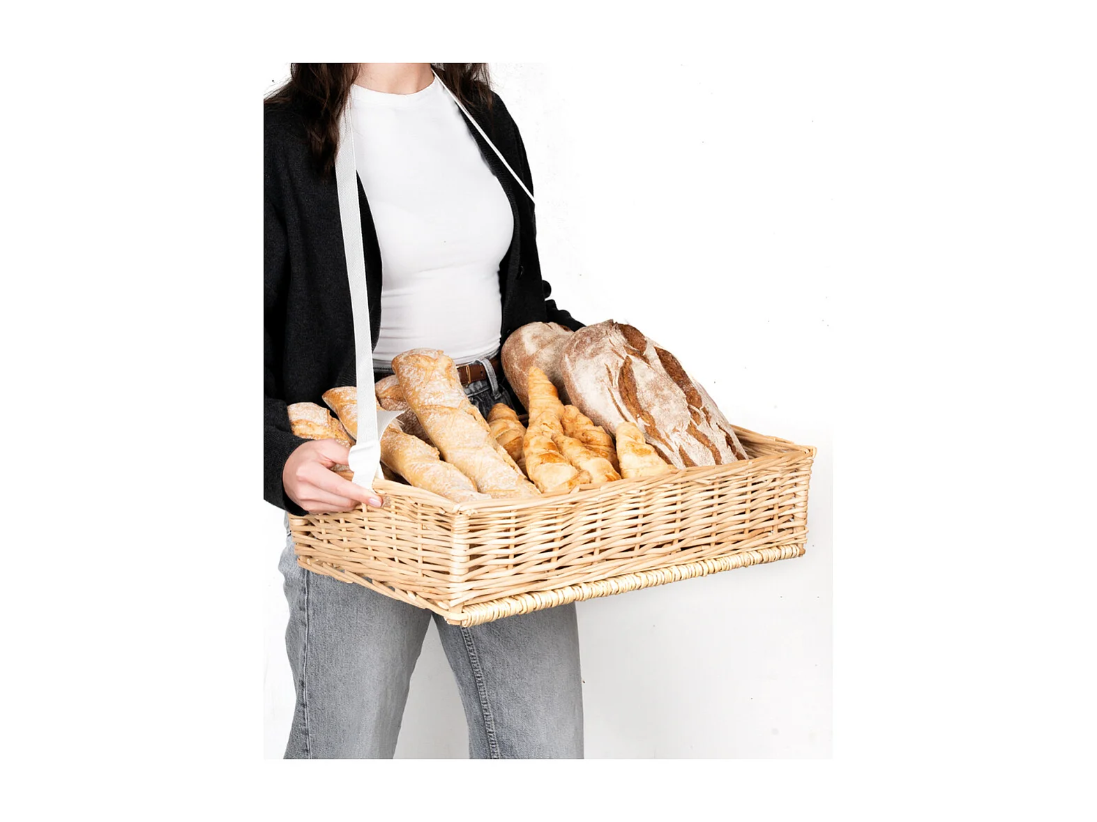 Manne en osier naturel avec passe-main Panier 50 x 34 cm + sangle ajustable posée