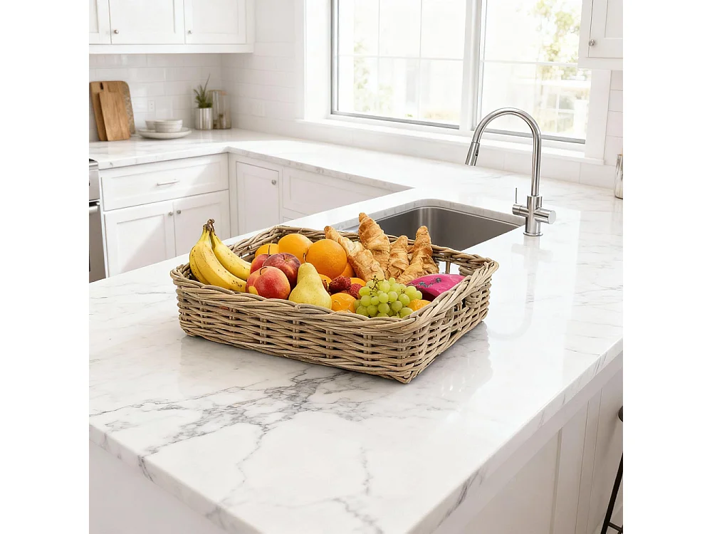 Manne en rotin synthétique gris foncé avec anses – Présentoir à pain ou viennoiseries