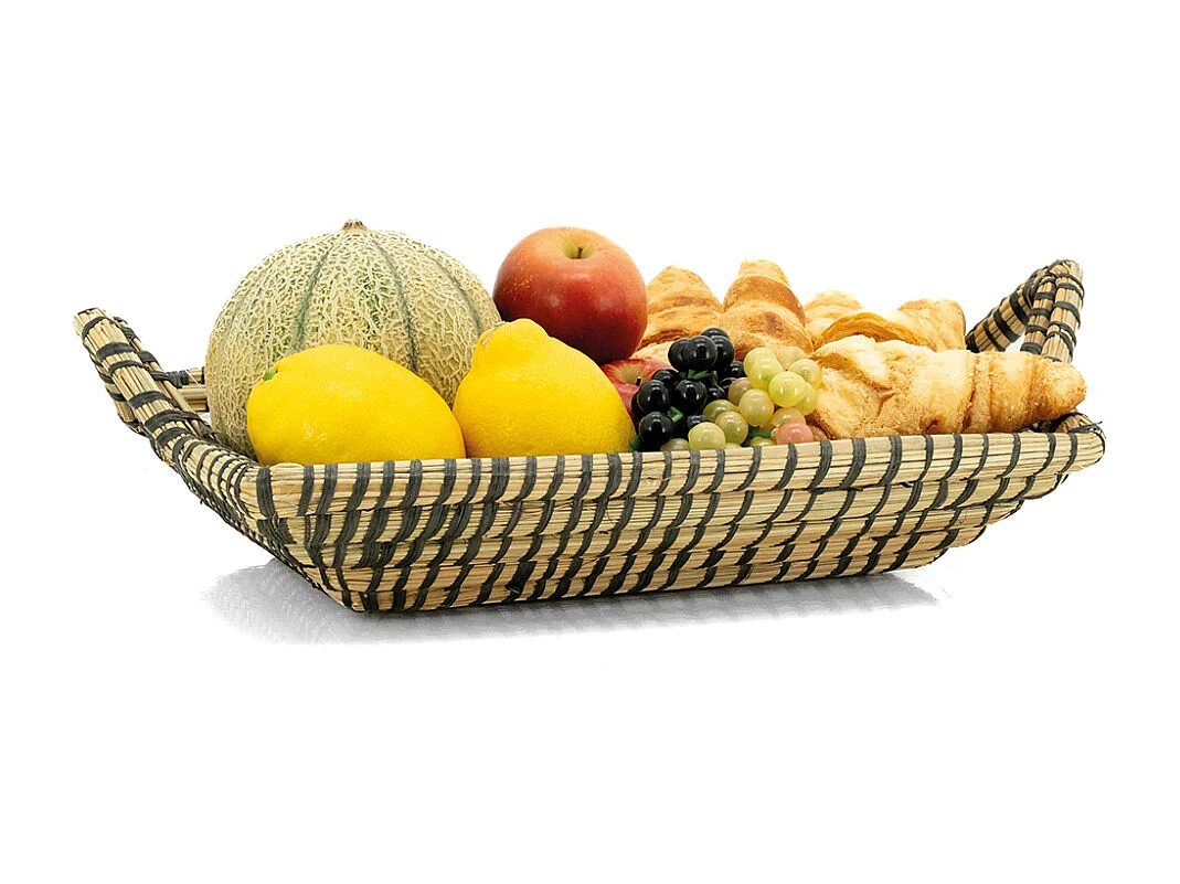 Manne rectangulaire en jonc naturelle Noir L 35cm