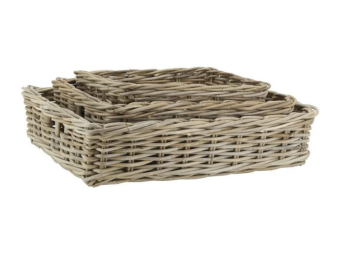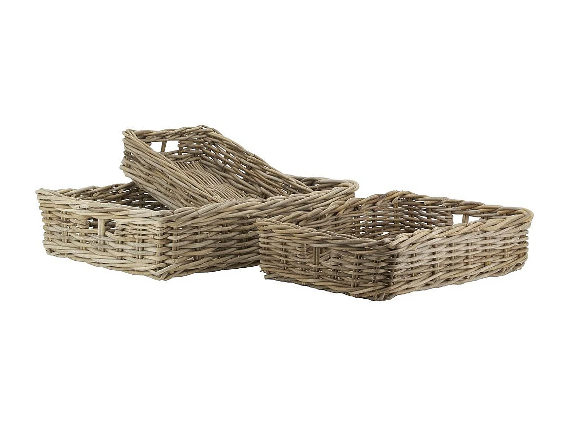 Série de 3 corbeilles rectangulaire en rotin naturel