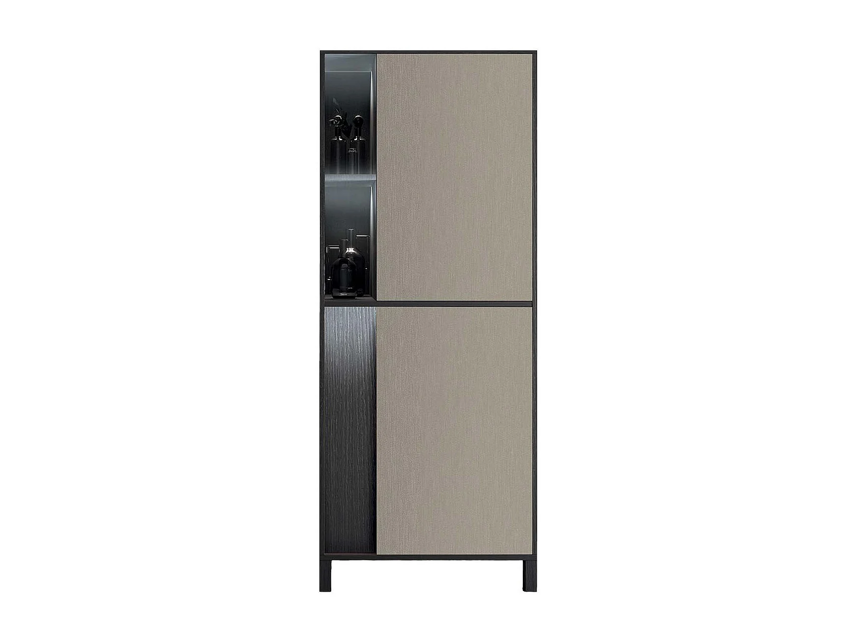 MANTA - Rangement Droit 2 Portes Effet Chêne Foncé et Champagne avec Leds