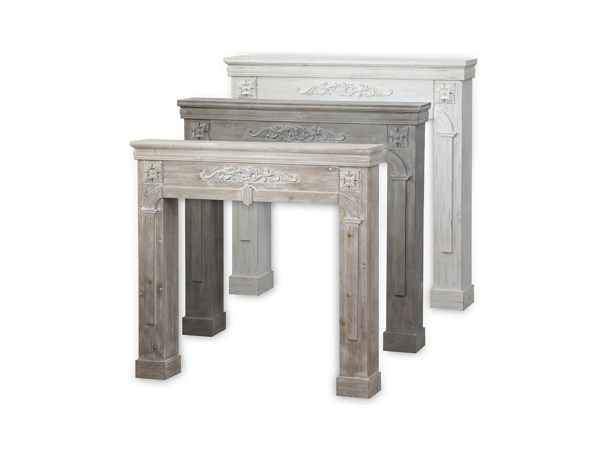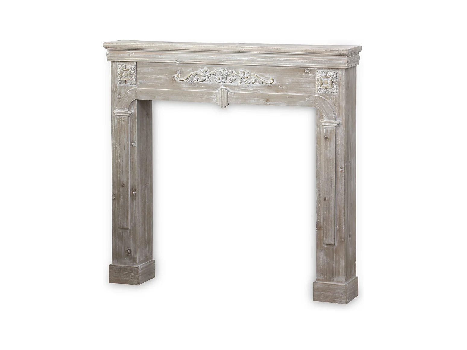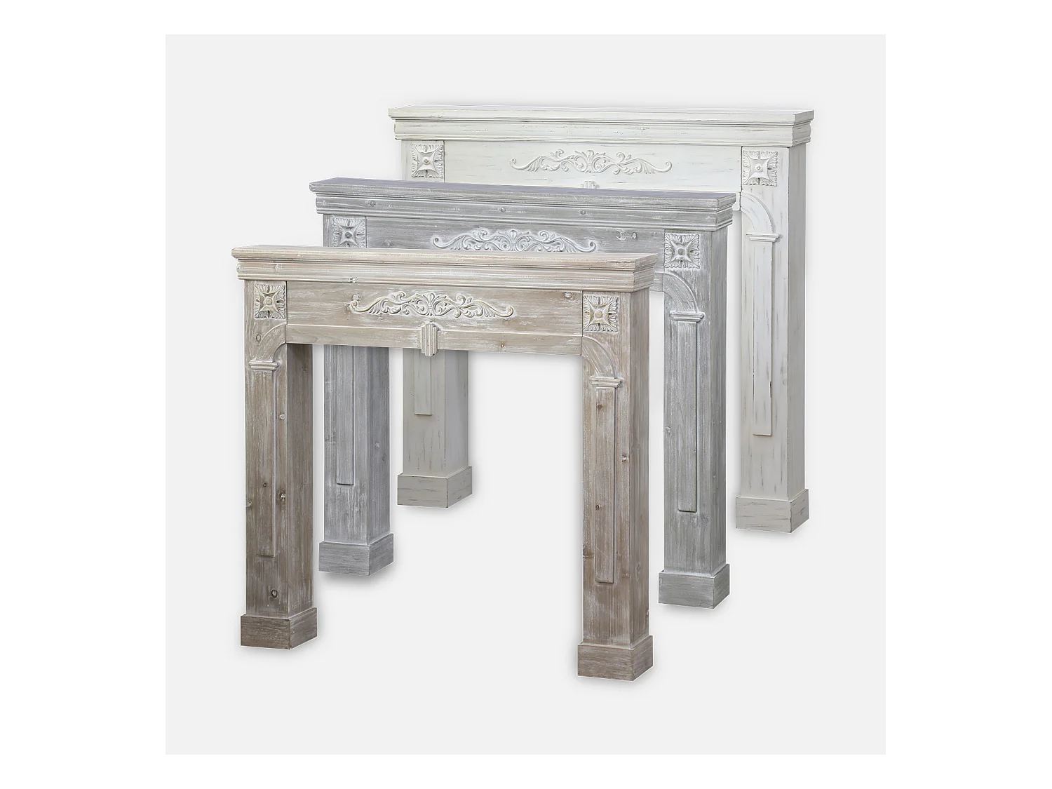 Cadre Cheminée Décoratif Florale Bois Blanc Rustique 92x93x22,5