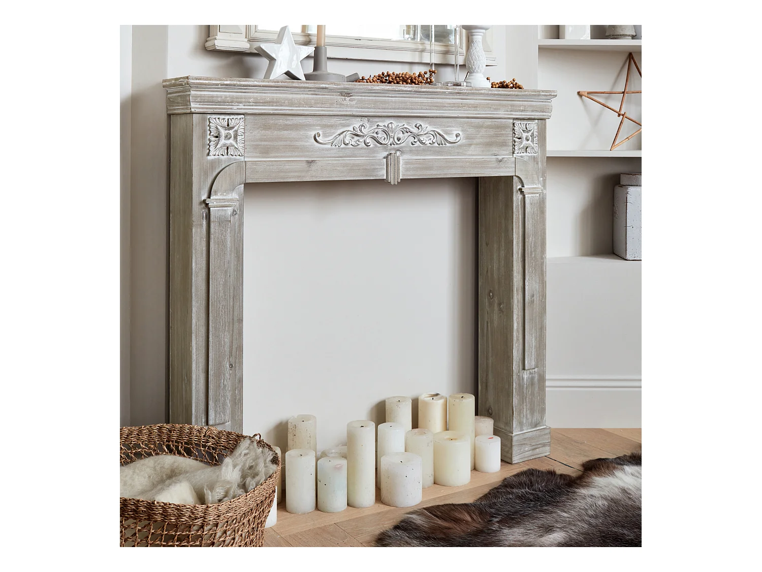 Cadre Decoratif Encadrement Cheminee Bois Gris Shabby 100x105x21