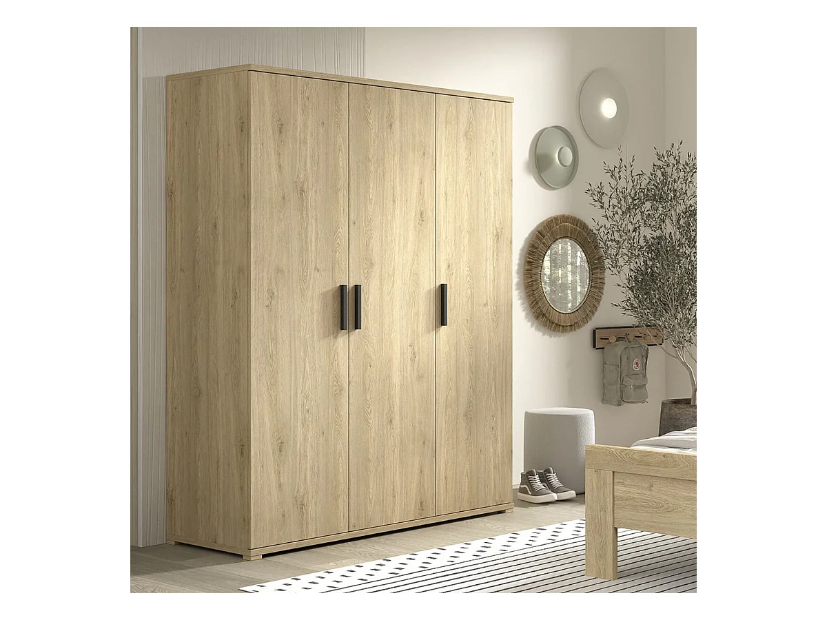 MARCO - Armoire 3 Portes en Mélaminé haute densité Aspect Chêne clair