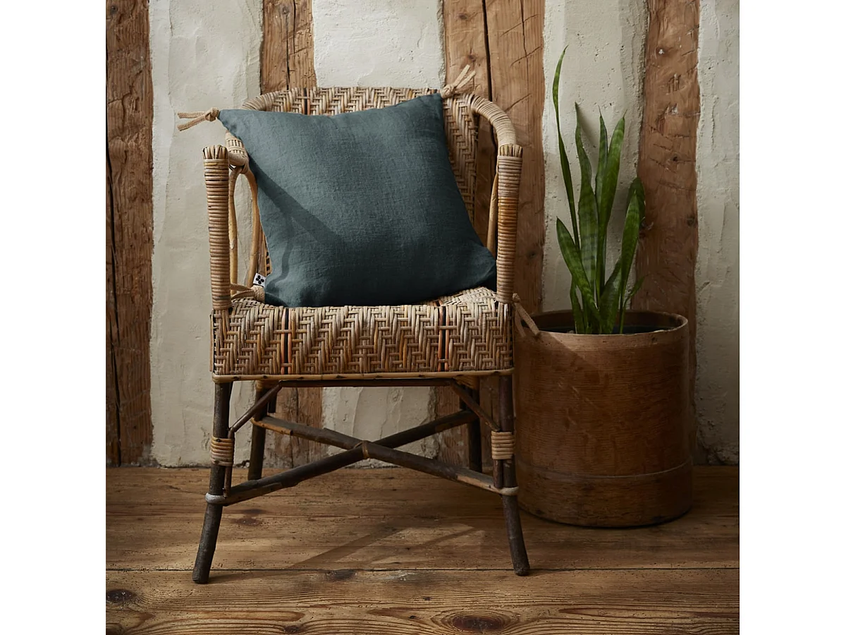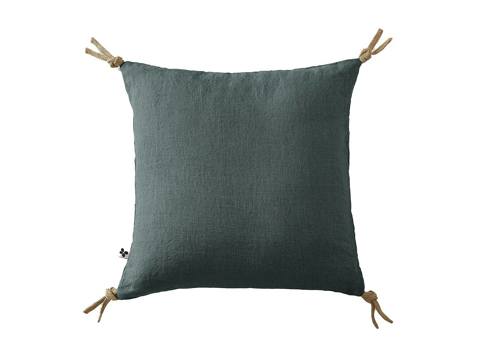 Lot de 4 coussin décoratif déhoussable en lin et coton coloris bleu canard - Longueur 45 x Profondeur 12 x Hauteur 45 cm