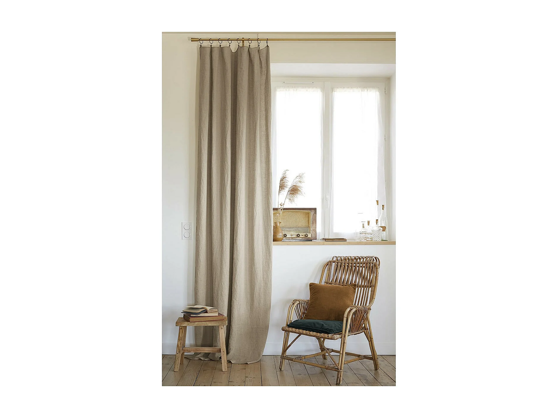 MARGAUX - Rideau Ajustable 140x270cm Lin Lavé Sable + 8 Anneaux Pince