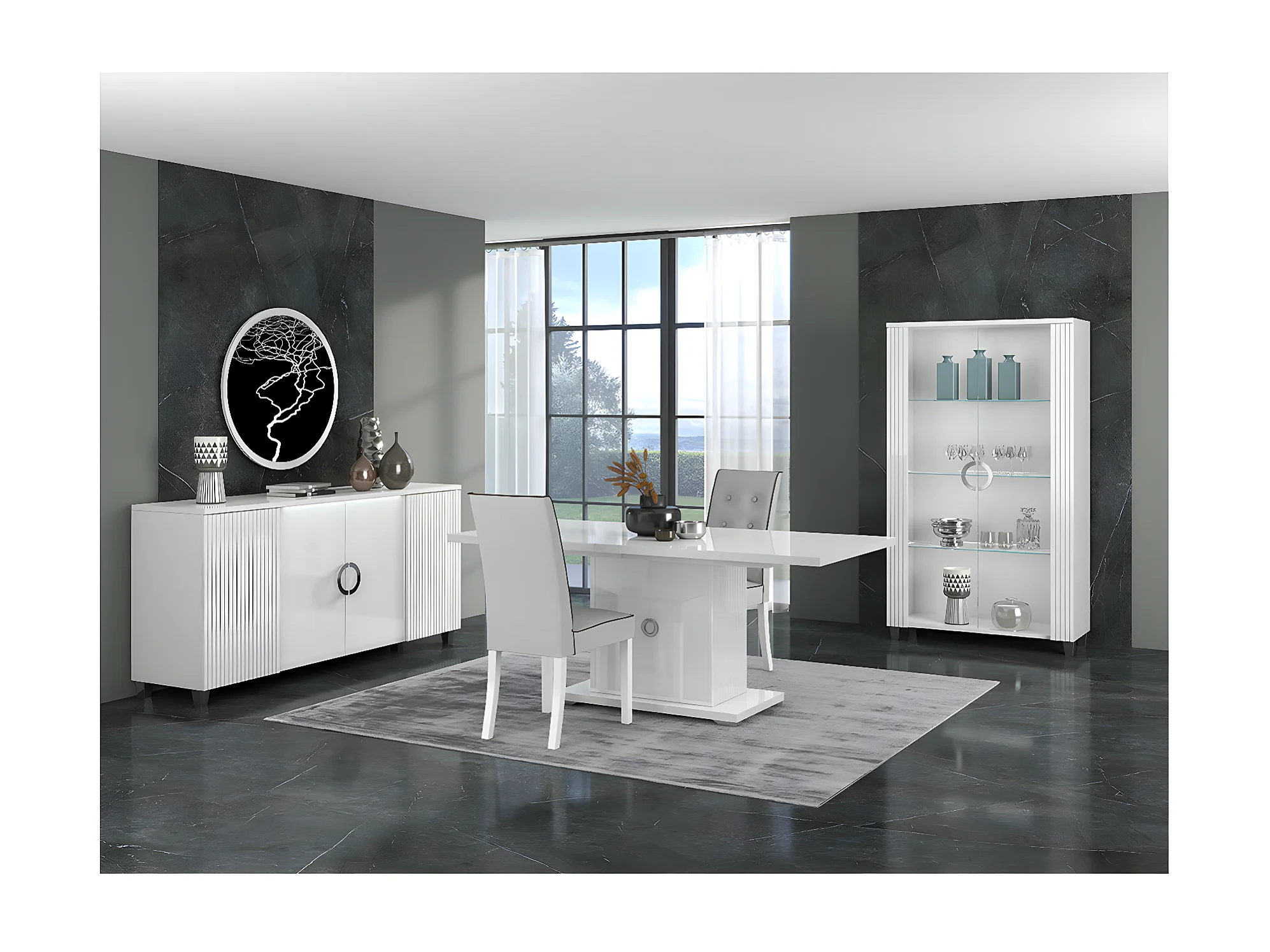 MARIKA - Buffet 4 Portes Laqué Blanc avec Leds