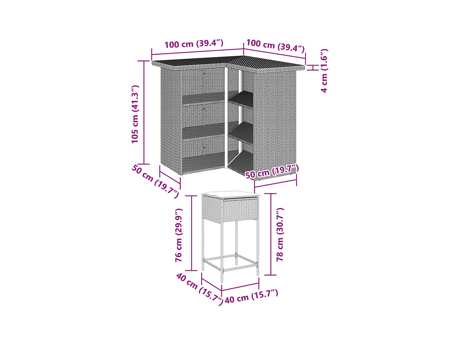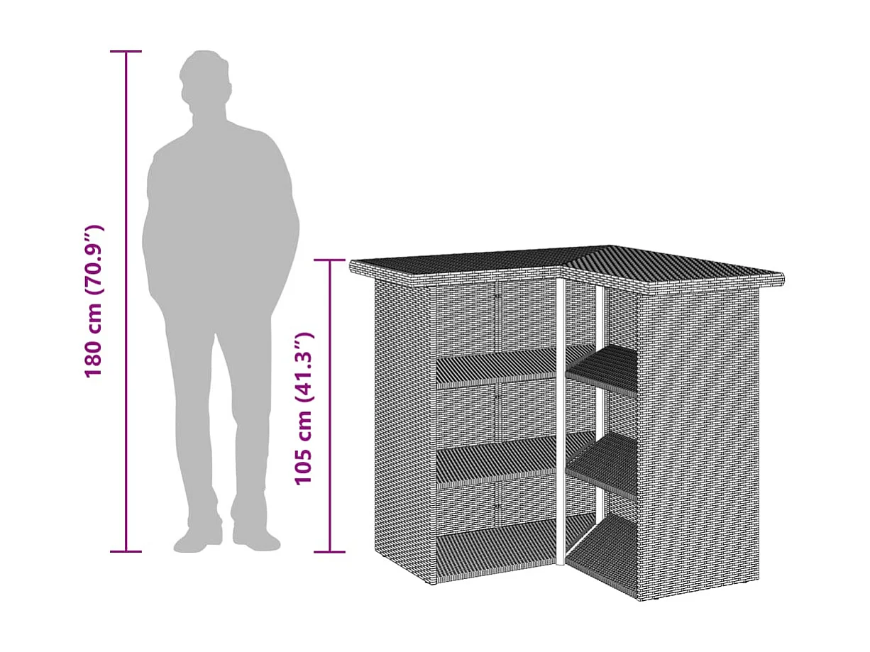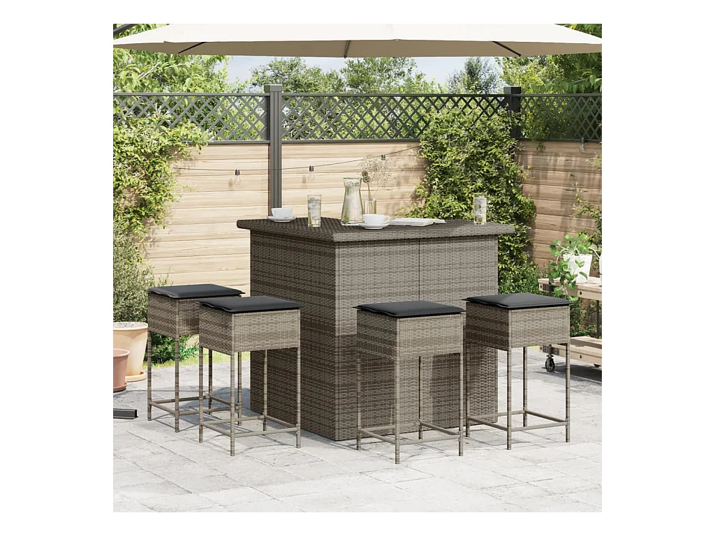 Marilou Ensemble de bar de jardin 3 pcs et coussins gris résine tressée