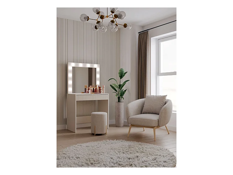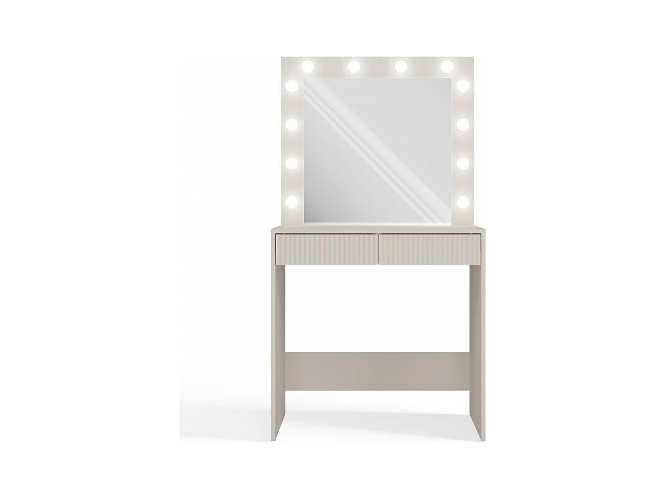 MARINA - Coiffeuse 6 tiroirs avec miroir et éclarirage LED - Blanc