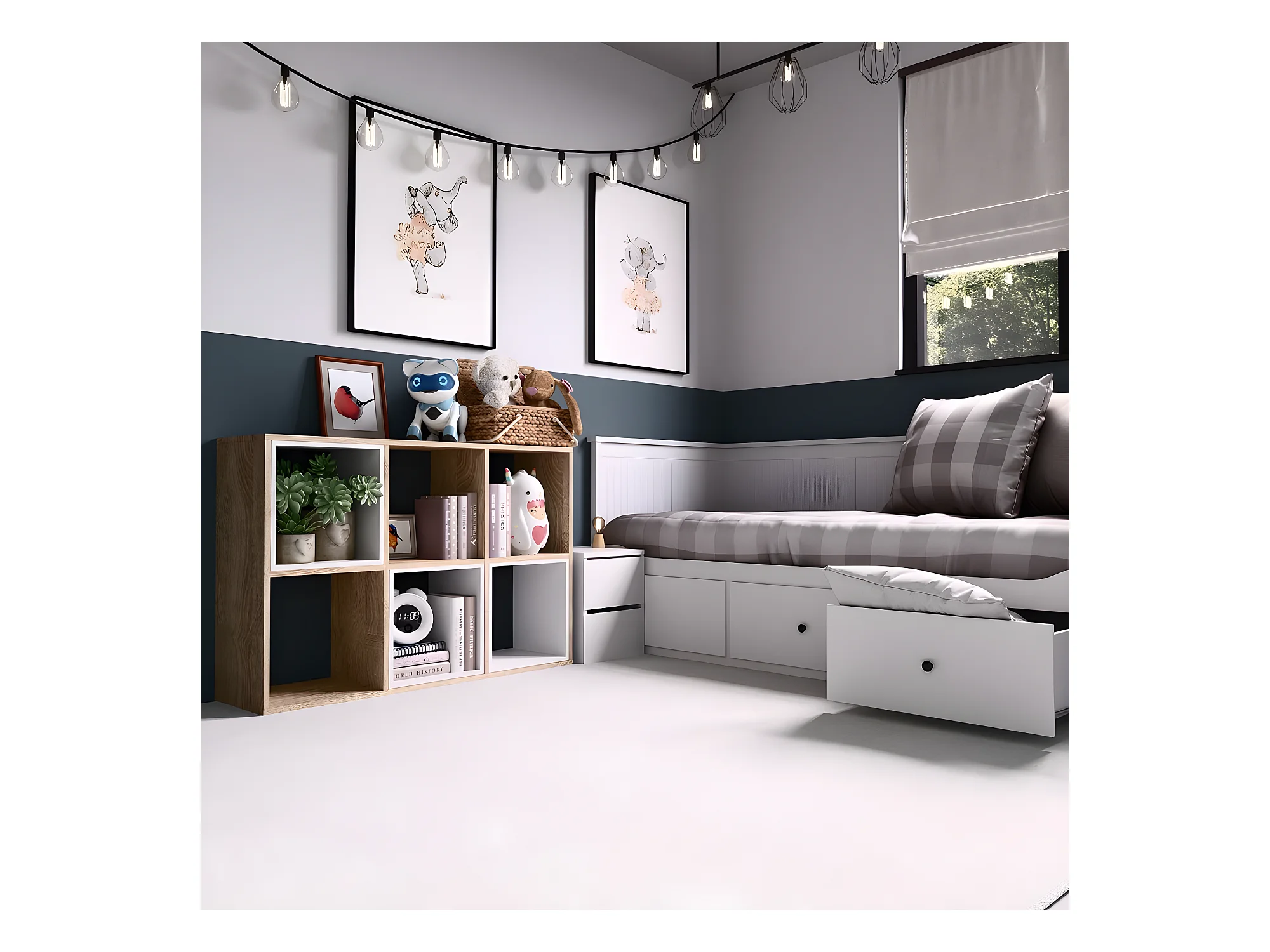Bibliothèque escalier cube coloris chêne candiene / blanc artic - Hauteur 110 x Longueur 108 x Profondeur 28 cm
