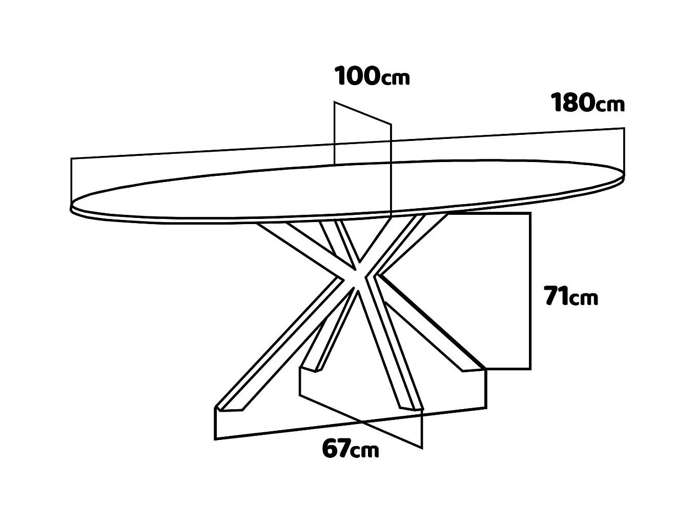 Marui Big - Table à manger ovale en bois et métal avec pied central Kiso 180x100 cm - bois noir