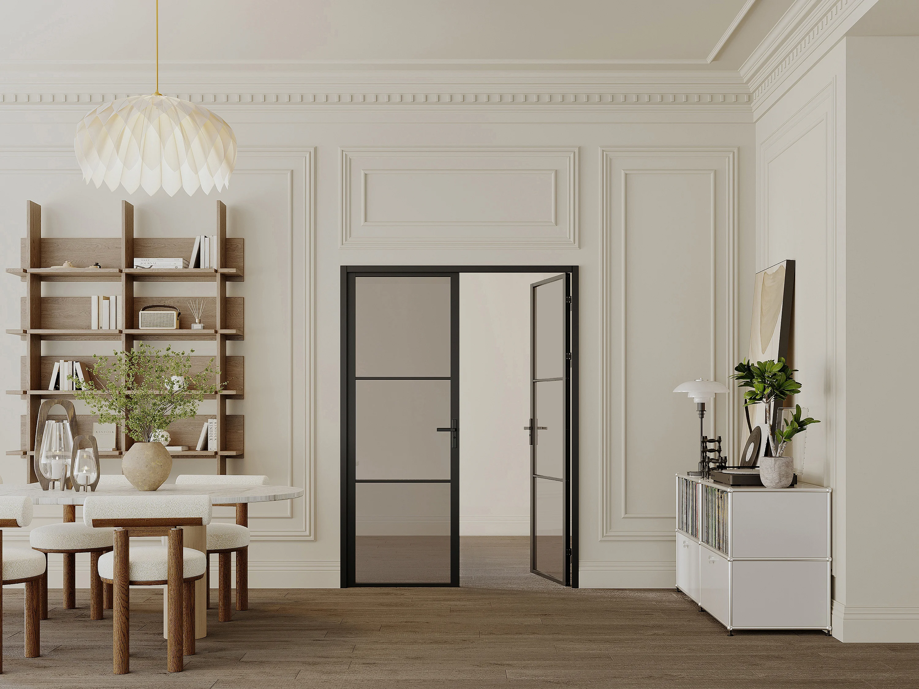 Bloc porte réversible à deux battants en aluminium et verre trempé fumé - 2 x H204 x L73 cm - Noir - MASERU