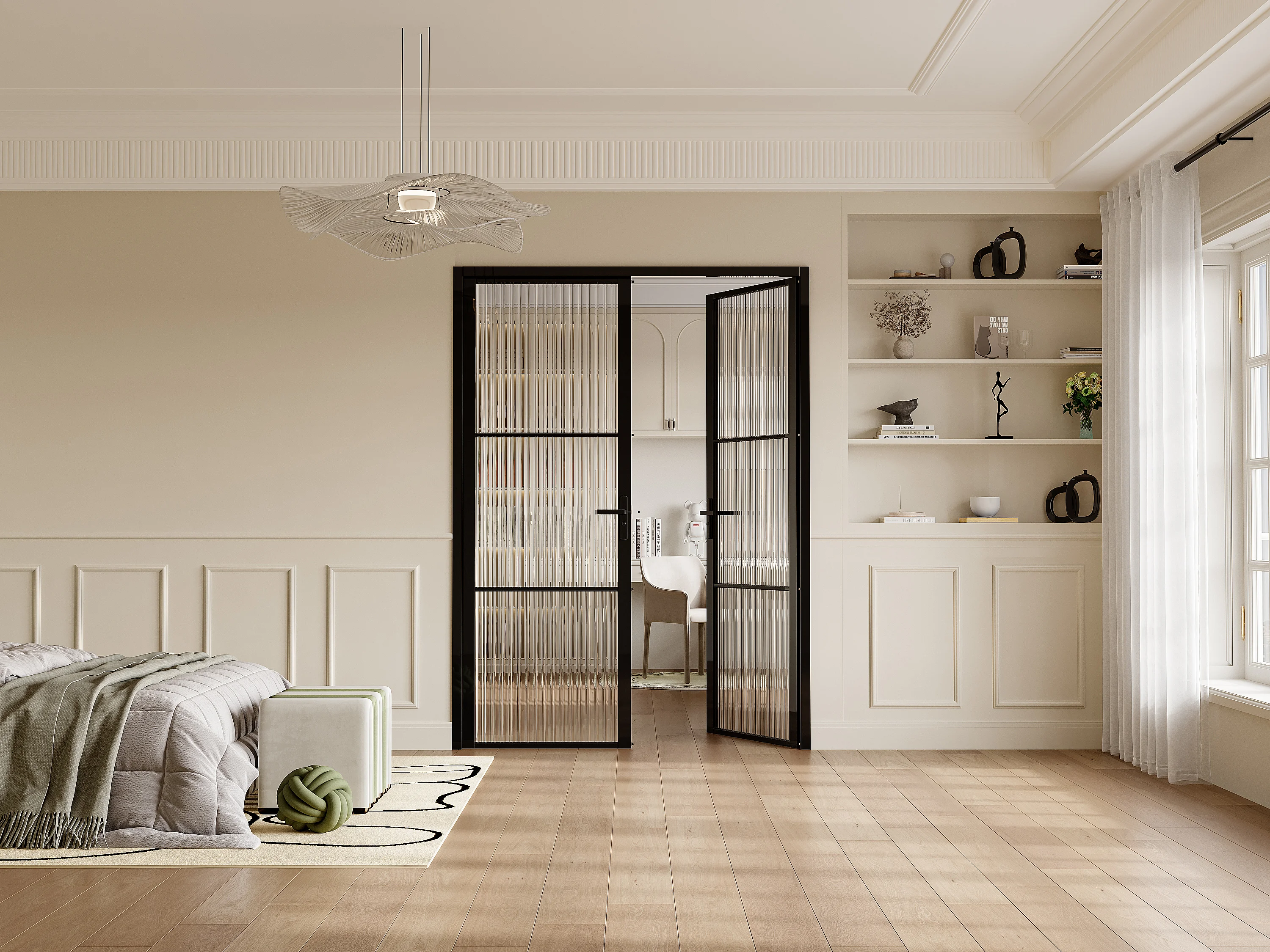 Bloc porte réversible à deux battants en aluminium et verre texturé - 2 x H204 x L73 cm - Noir - MASERU