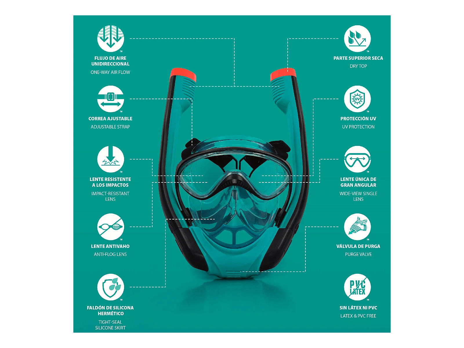Masque de Plongée Complet avec Tuba pour Adultes Bestway Flowtech Taille L/XL avec Vision Complète à 180°