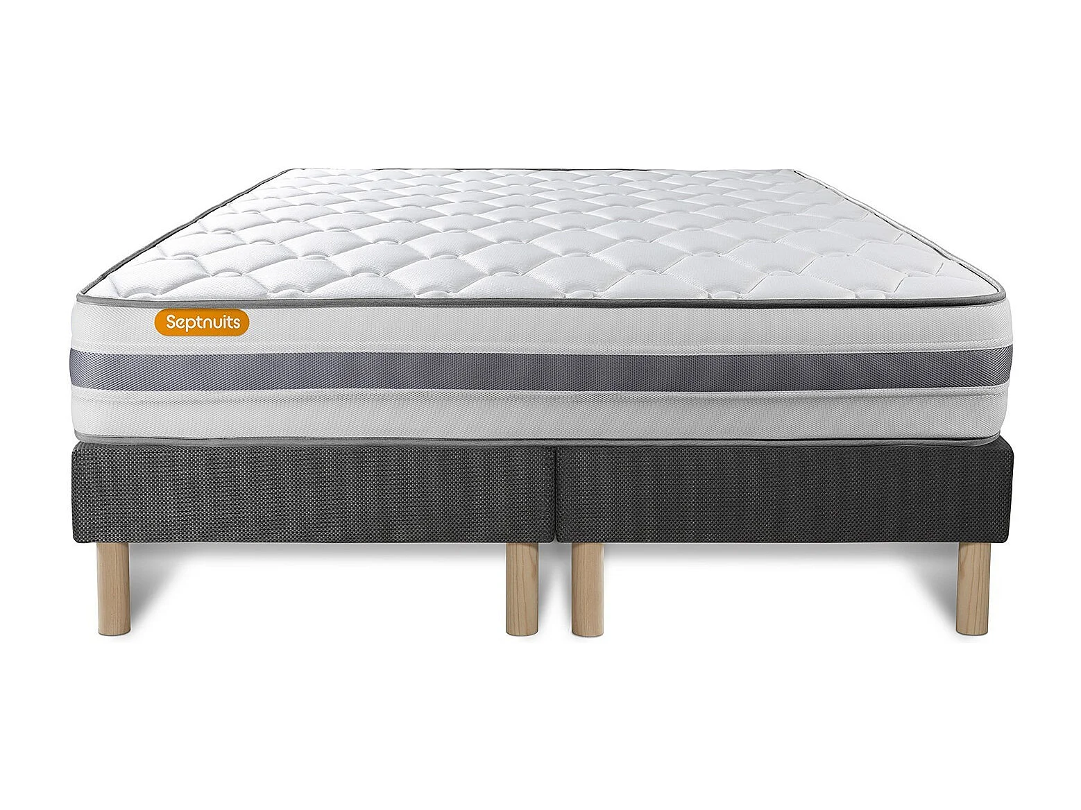 Matelas 160x200 + double sommiers gris 80x200 Memo Spring Ressorts ensachés 3 zones de confort MAXI épaisseur