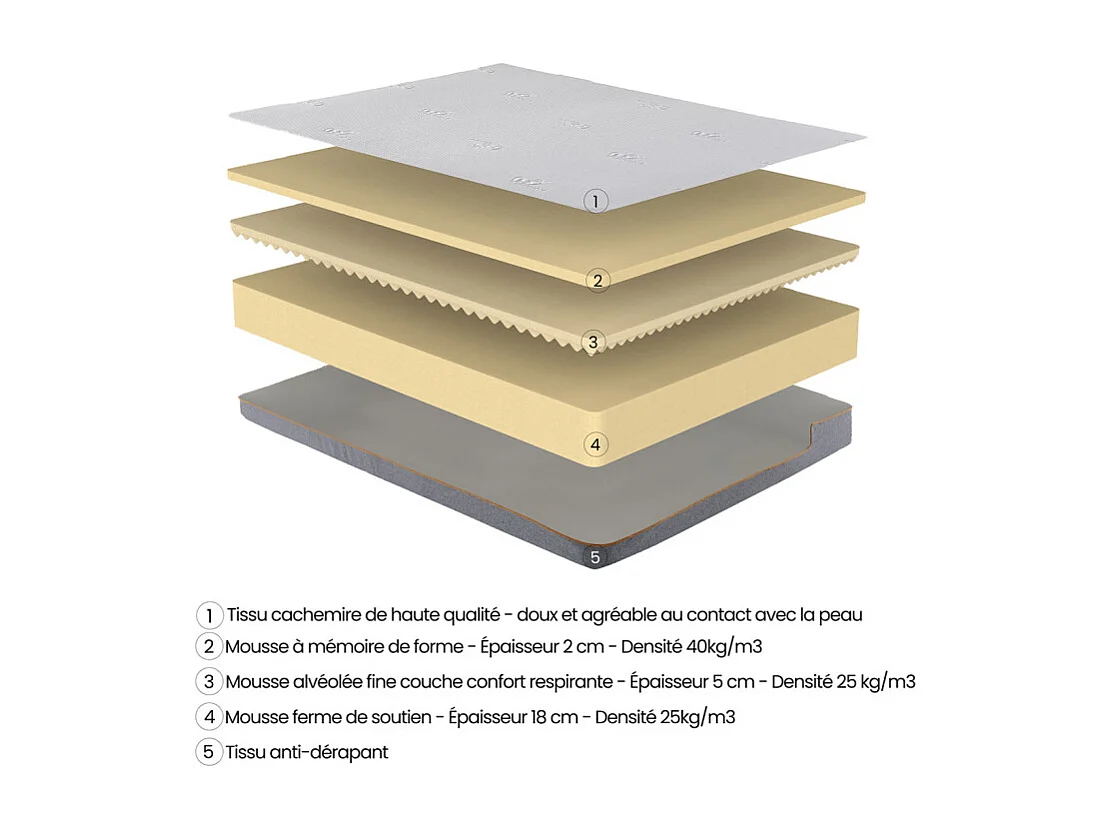 Matelas 180 x 200 cm en tissu cachemire avec mémoire de forme – GLOIRE