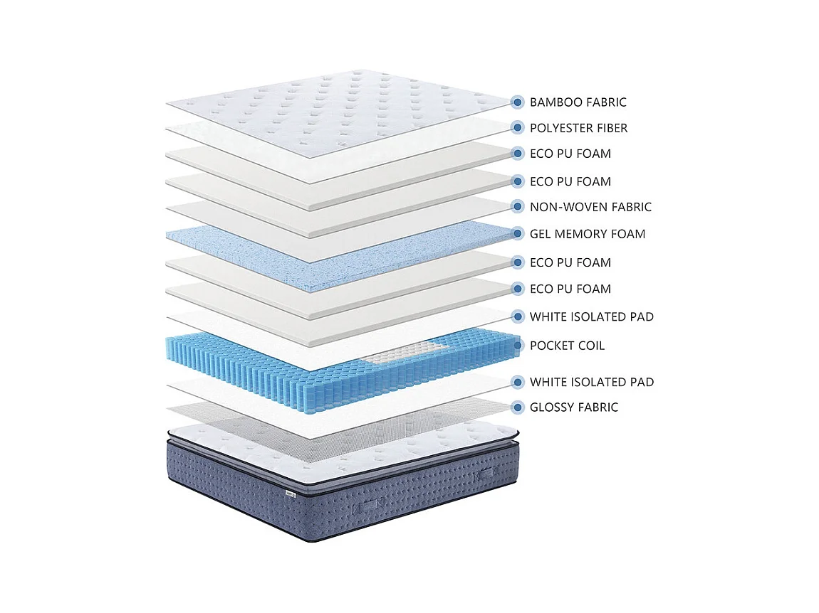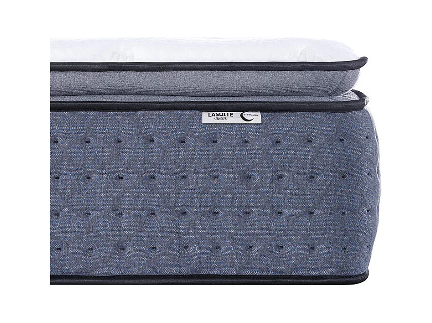 Matelas 180x200 cm ep 35 cm ressorts ensachés 3 zones + mousse mémoire, coutil bambou, bords renforcés - LASUITE