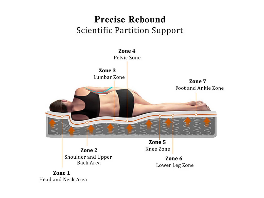 Matelas Orthopédique 90x200 cm anti-feu, avec 4 poignées, OEKO-TEX®, ép.20cm, Respirant, 7 Zones ressorts ensachés