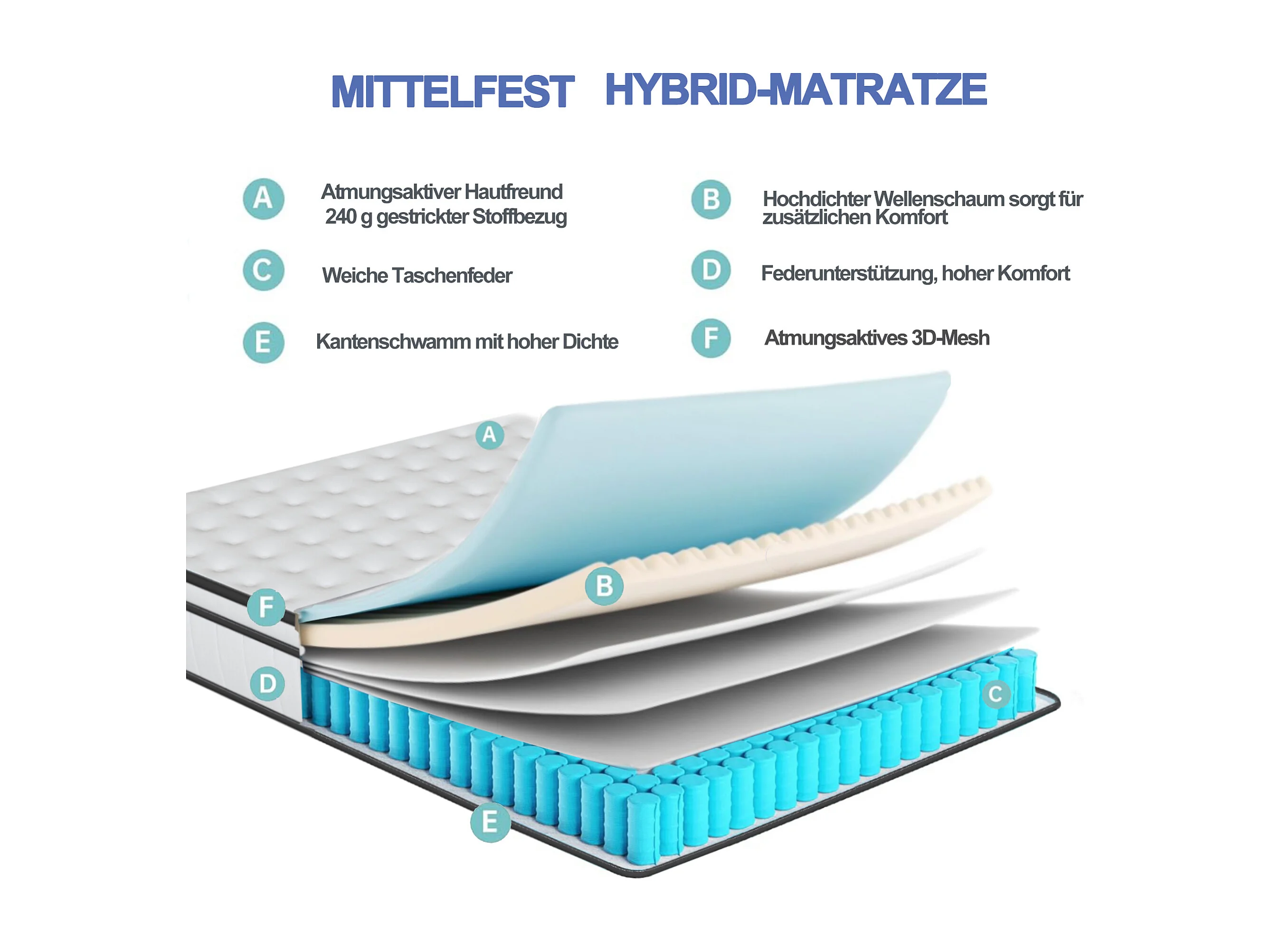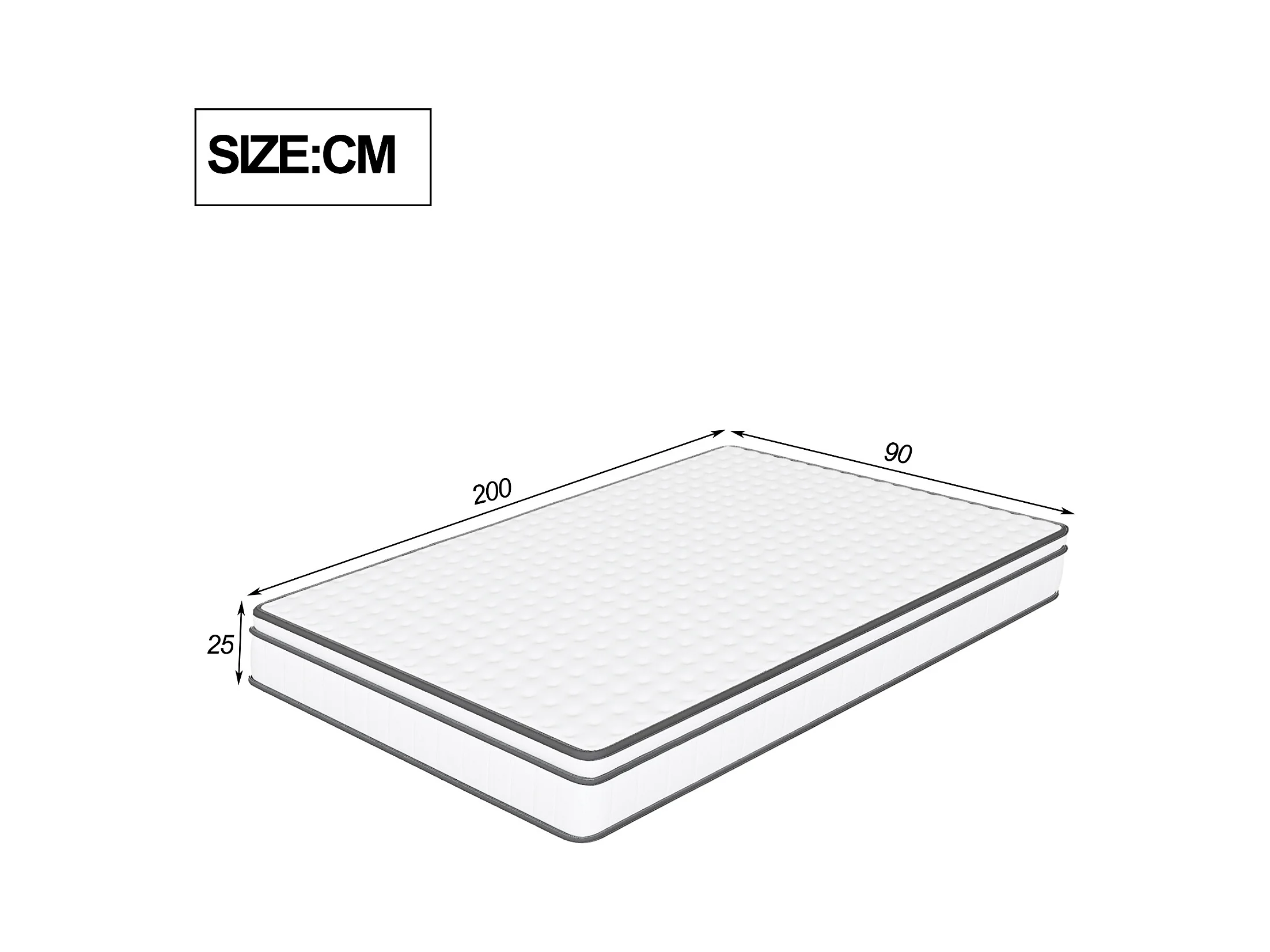 Matelas 90x200 cm à ressorts ensachés avec surmatelas intégré – Épaisseur 25 cm