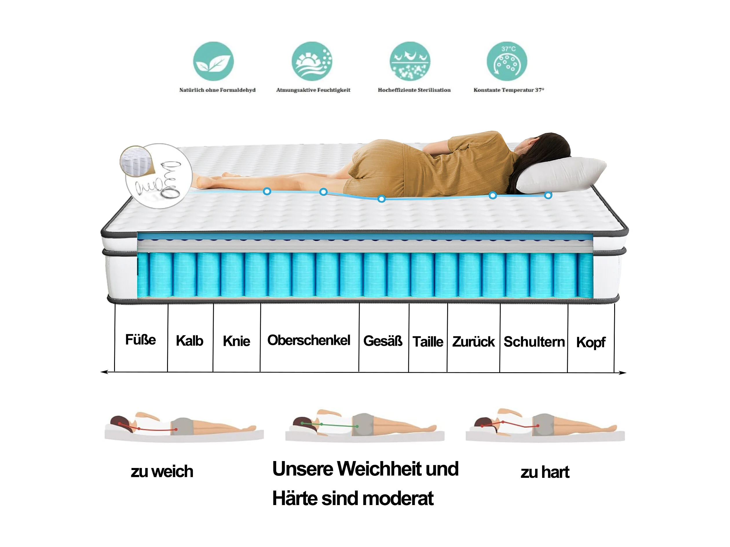 Matelas Ressorts Ensachés 90X200 ELBA, Epaisseur 24 CM, 7 zones de confort. Déhoussable. Hygiénique et respirant